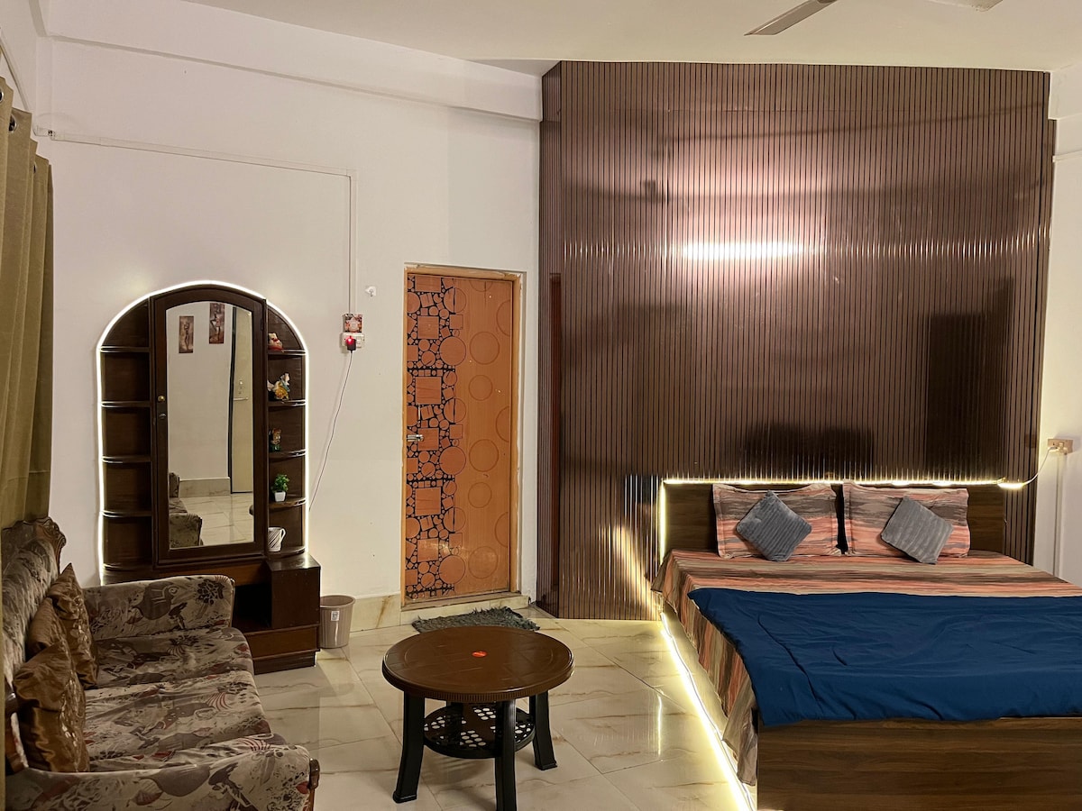 A full apartment with all the necessary amenities and parking. 1.5km/1 mile away from main town. Easy communication throughout day. 1 Queen Bed, 1 Double Bed, Kitchen and Living room. Unmarried couple friendly with valid govt ID. Services with Extra Charges: 1) Car Pickup and Drop. 2) Access to Yoga Session at Earth Yoga Studio. 3) Bonfire. 4) Above 2 person there are extra charges. 5) If your pet makes the space dirty there is an extra ₹400 cleaning charges. You’ll feel right at HOME.