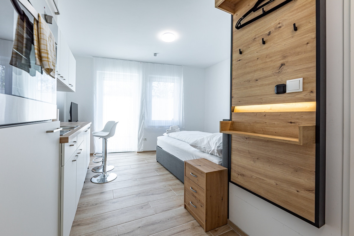 1 izbový apartmán s balkónom a parkovaním zdarma na vyhradenom parkovacom mieste hneď vedľa domu. Byt s rozlohou 30m2 a výhľadom na Rakúsko a západ slnka Povolené sú aj zvieratá. Vybavenie apartmánu: - 2x veľký a 2x malý uterák - sprchový gél, šampón, - čistiace prostriedky - káva, čaj Apartmán sa nachádza na začiatku Bratislavskej mestskej časti Záhorská Bystrica. Dostupnosť je 2 minúty pešo od autobusovej zastávky (Krče), 20min. autobusom z hlavnej stanice, 15min. autom