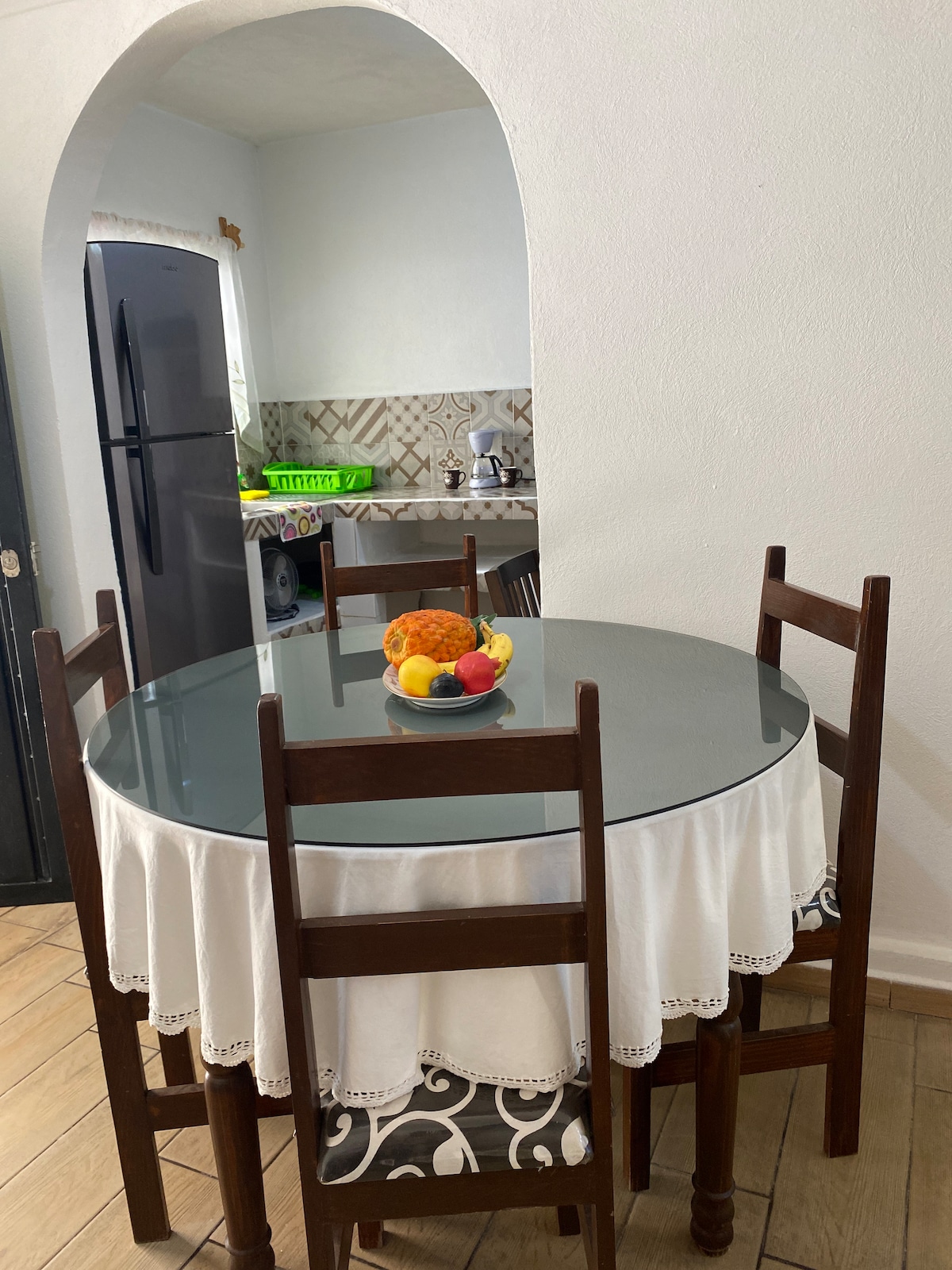 Localizada a la entrada de la ciudad sobre avenida principal muy fácil de localizar. Cerca de tiendas y restaurantes, un Domino's pizza al cruzar la calle Muy cerca de la central de abastos y central camionera 2 Camas matrimoniales, 1 colchón inflable. Cuenta con calentador solar de agua Cocina funcional para preparar alimentos Cochera privada disponible