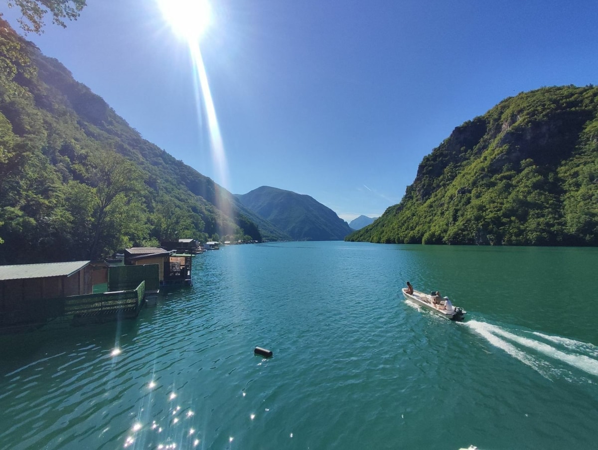 Jedinstven objekat na vodi u srcu Nacionalnog parka Tara. Besplatno koriscenje sup daske sa veslom. Moguc obilazak kanjona Drine, treceg najdubljeg kanjona na svetu brzim camcem.