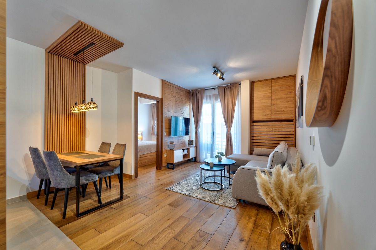 Luxuriously furnished apartment in Zlatibor, located in the heart of the tourist complex, with a modern design and a secured garage space. The apartment is ideally located with a view of Tornik, just a few minutes walk from the center of Zlatibor and the Gold Gondola. The apartment is equipped with the latest equipment - Smart TV, washing machine and dryer, dishwasher, air conditioning, coffee maker. The complex includes a gym, Wellness & Spa in the neighboring building (for an additional fee).
