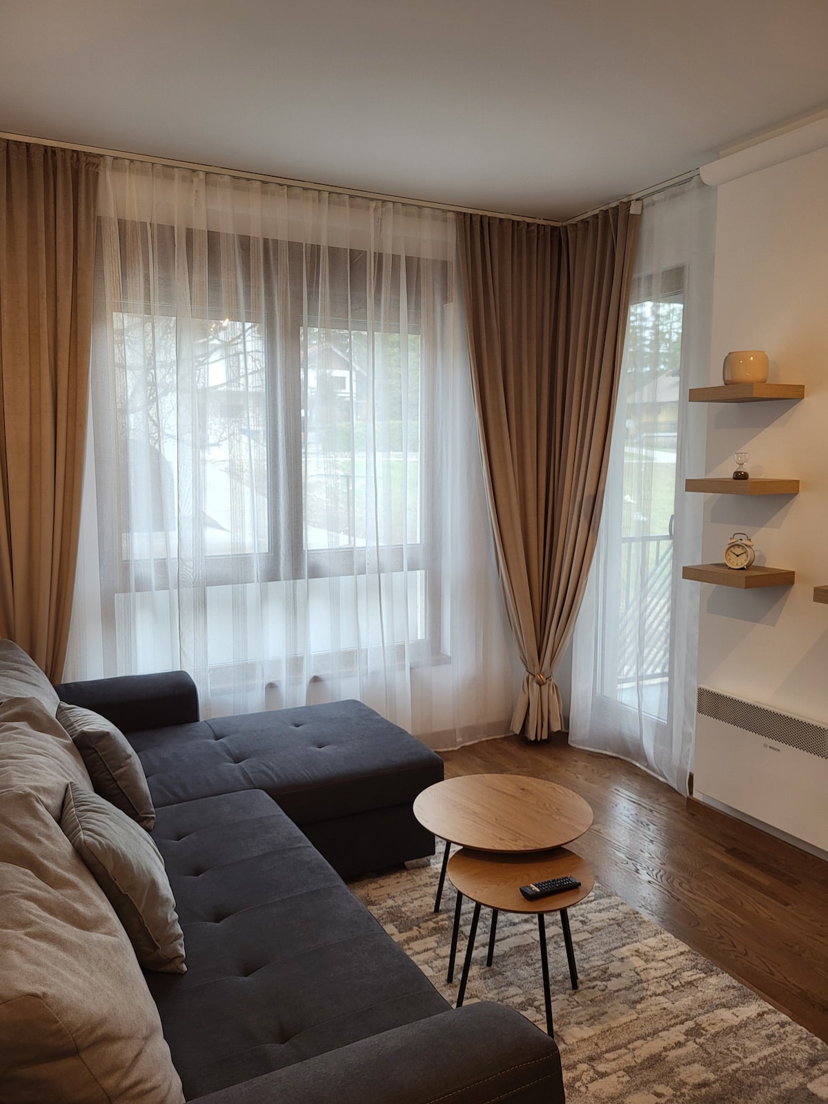 Luxuriously furnished apartment in Zlatibor, located in the heart of the tourist complex, with a modern design and a secured garage space. The apartment is ideally located with a view of Tornik, just a few minutes walk from the center of Zlatibor and the Gold Gondola. The apartment is equipped with the latest equipment - Smart TV, washing machine and dryer, dishwasher, air conditioning, coffee maker. The complex includes a gym, Wellness & Spa in the neighboring building (for an additional fee).