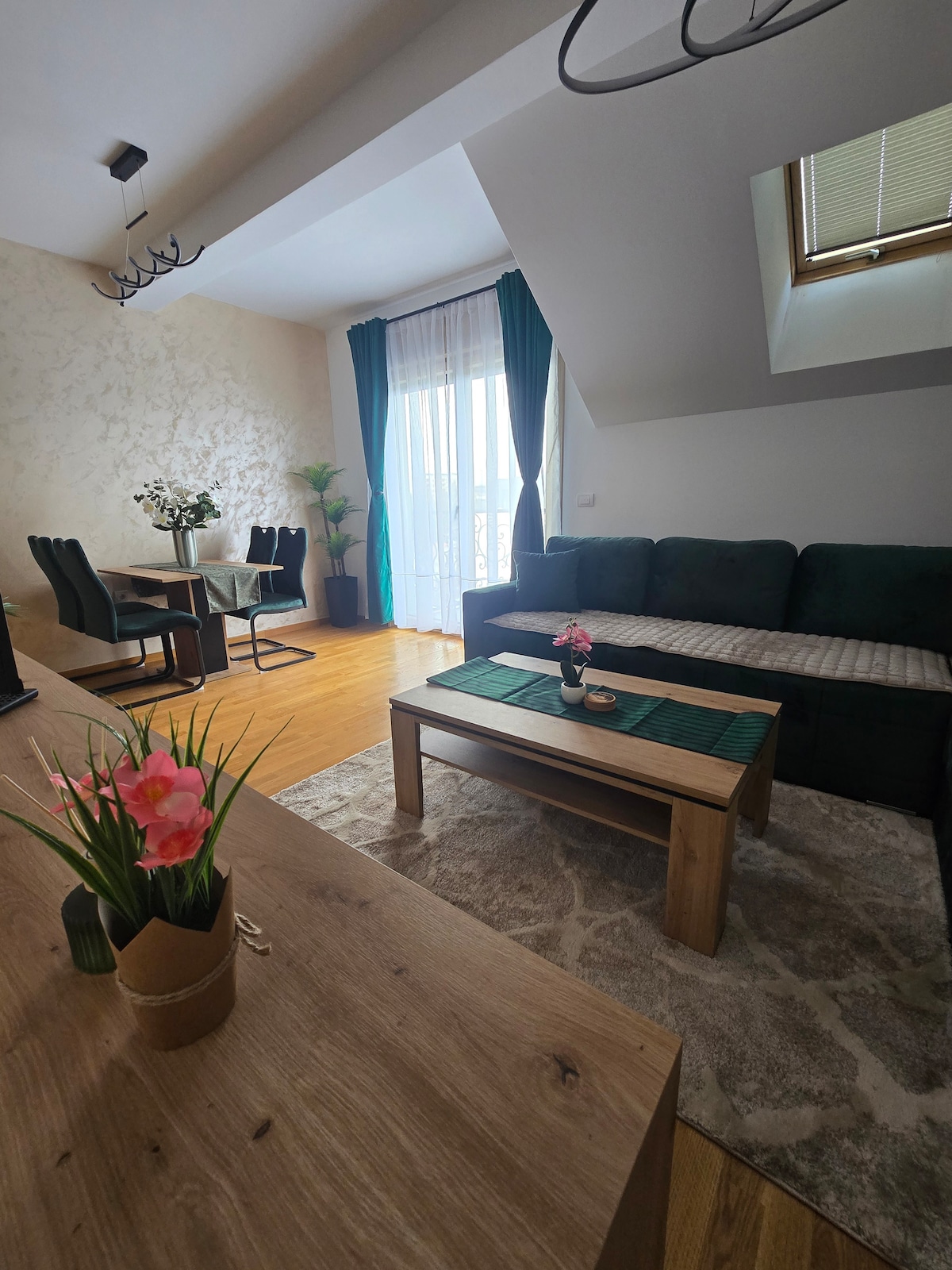 Dobrodošli u naše nove apartmane u tek izgrađenoj zgradi, na svega pet minuta šetnje od samog centra Zlatibora. Savršeno mesto za odmor, opuštanje i uživanje u planinskom ambijentu. Svaki detalj prostora pažljivo je odabran kako biste se vi i vaši najmiliji osećali prijatno. Gostima su na raspolaganju privatni parking i spa centar u okviru objekta, idealni za potpunu relaksaciju nakon dana provedenog u prirodu. Dođite da uživate u miru, udobnosti i toploj atmosferi naših apartmana.