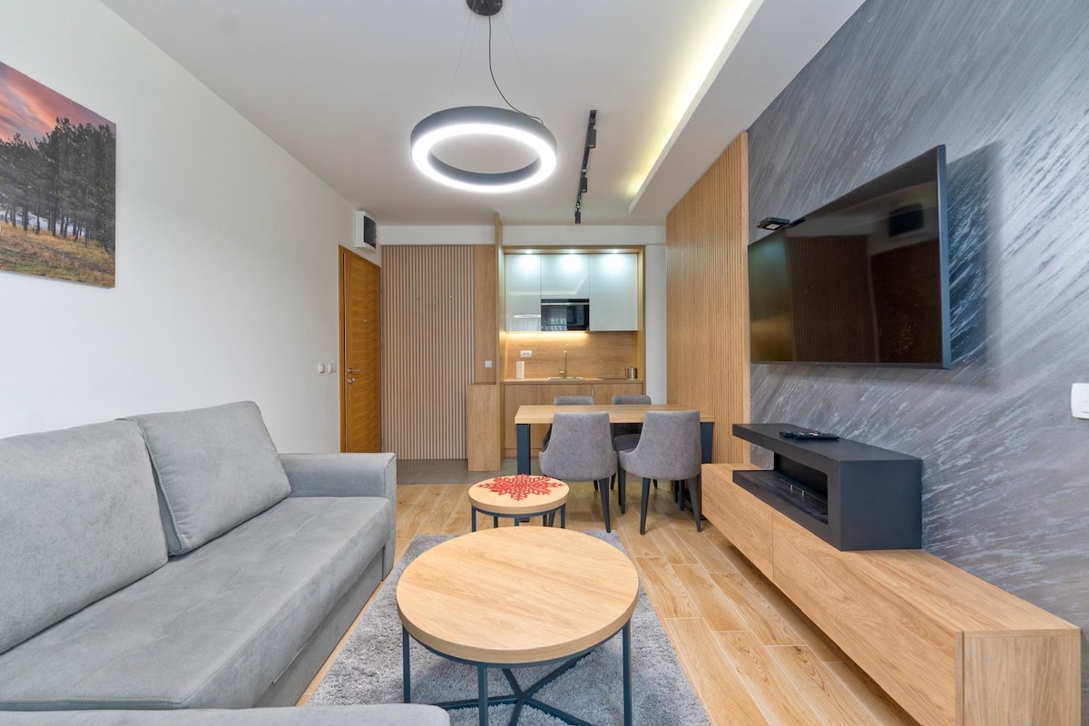 Luxurious modern apartment in the heart of Zlatibor! Located in a quiet tourist complex just a few minutes walk from the center, Gold Gondola, lake and ski slope. Perfect location for a vacation at any time of the year. ◆Secure garage parking (free) ◆View of Tornik ◆Smart TV, A/C, washing machine + dryer, dishwasher, coffee maker ◆Wellness & Spa within the complex (additional charge) For luxury without the crowds, the perfect choice for relaxation. Zlatibor - everything at your fingertips!