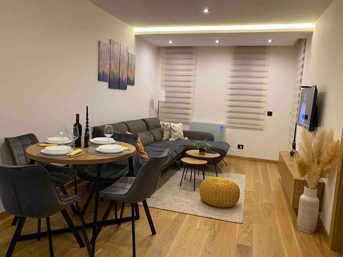 The 4-star Lux Apartment Sueno is located in the center of Zlatibor, in the Zlatibor Hotel, a few steps from the lake. It has a living room, a fully equipped kitchen, a bedroom, a terrace and a bathroom. It is intended for 4 people. The hotel's facilities: spa center, gym, children's playroom, billiard room, bowling alley, restaurants and parking are available to Sueno apartment guests with an additional charge, according to the hotel's official price list.