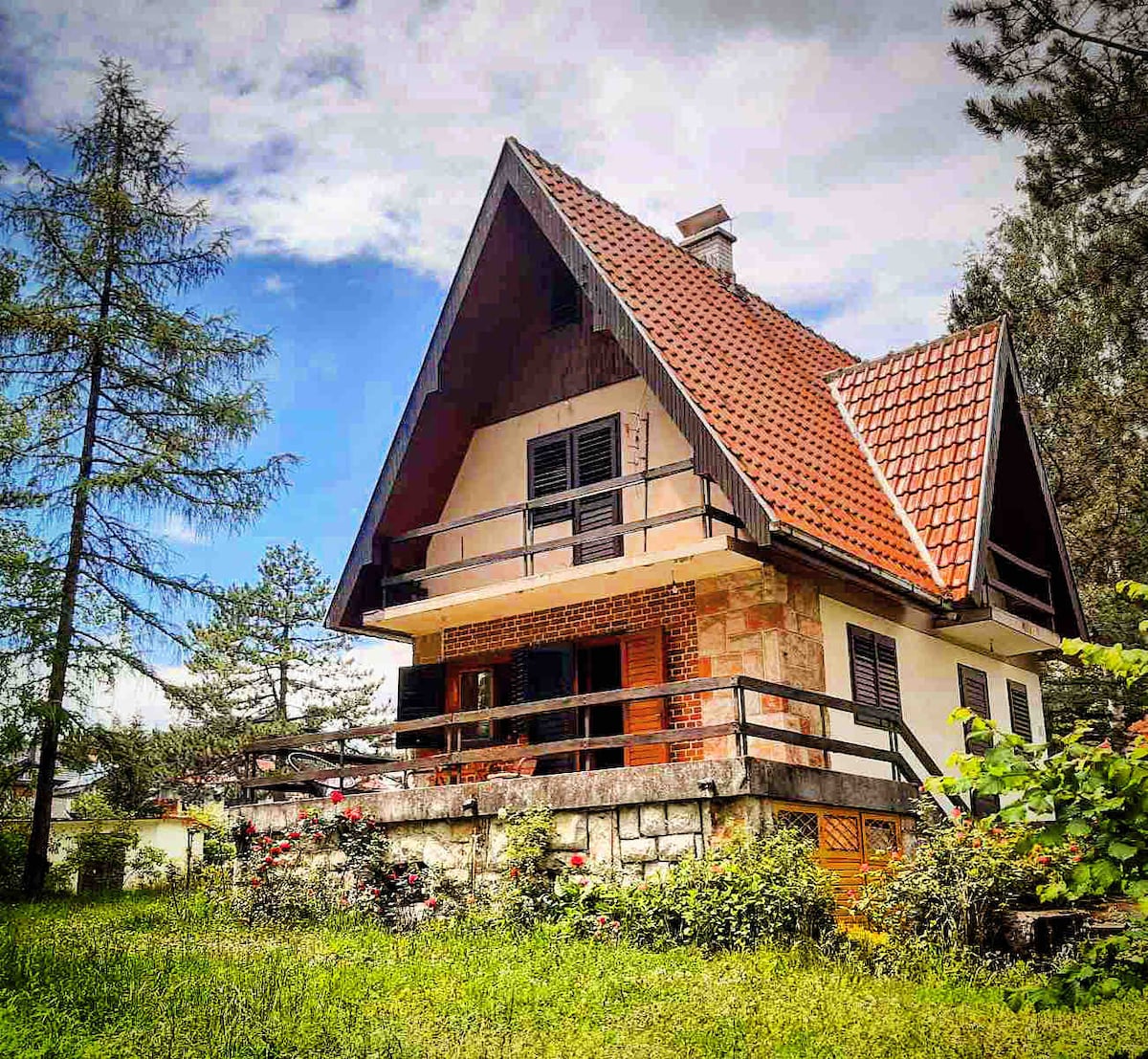 Feel real warm mountain house experience in intimate neighborhood. This is the place were you can really enjoy nature of Zlatibor, but if you choose to stay inside, big and cosy living room will be perfect relaxation space. If other people choose to party, sleeping rooms are separate in the back of the house so you can rest peacefully. Osetite pravu toplinu planinske kuće okružene Zlatiborskom prirodom. Ako odlučite da vreme provodite unutra, velika dnevna soba biće pravo mesto za opuštanje.