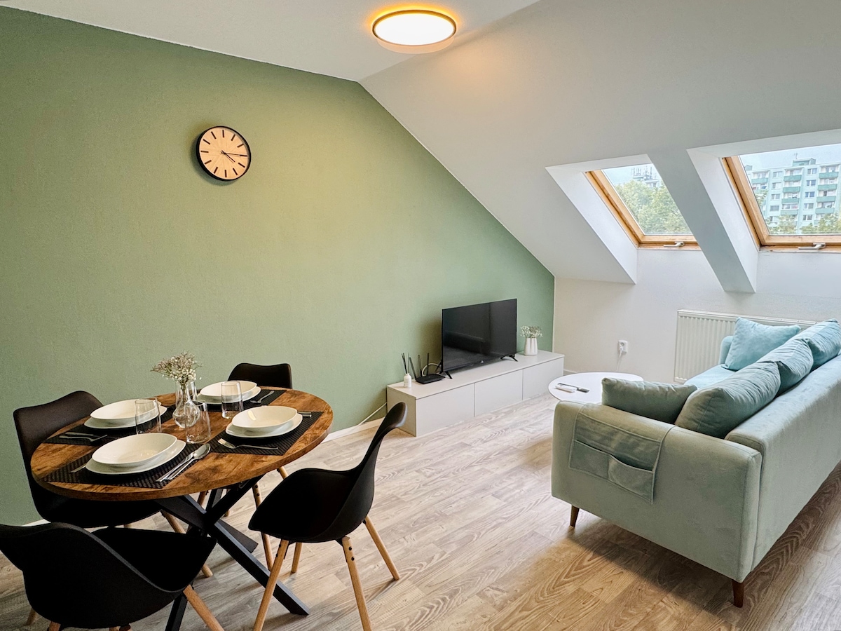 Welcome to our stylish, modern, and new apartment located in the heart of Zlin! Situated in the city center, everything is within walking distance, making it convenient for you to explore. Our disability-friendly accommodation features a balcony and is just a stone's throw away from the beautiful Zlin park. Book now for a delightful stay!