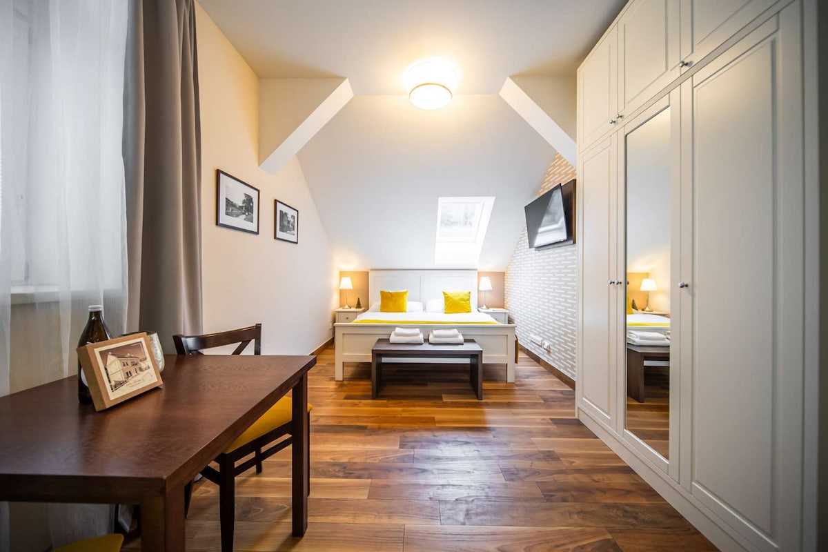 Un hébergement unique au cœur des Carpates blanches Nous vous invitons à séjourner dans notre appartement rénové, situé au premier étage dans les combles d'une ancienne tannerie, aujourd’hui transformé en "Klobucká Manufaktura". L’appartement offre un cadre chaleureux idéal pour un séjour confortable et authentique. En plus de votre hébergement, vous pourrez visiter notre musée du chapeau et, sur réservation, découvrir l’art de la chapellerie dans notre atelier.