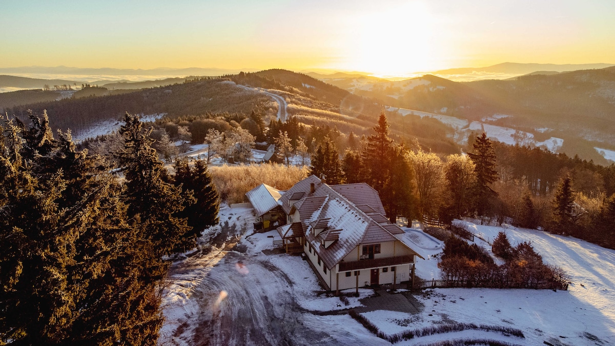 Nestled in the hills and forests lies a cottage that feels like a fairytale escape. The historic building, complemented by a newer one, offers cozy space for large groups. Accessible only by foot, this retreat offers true seclusion and tranquility. Each season has its magic: blossoming spring meadows, the forest’s summer scents, autumn’s golden hues, and winter wonderland scenes. After a day in nature, relax in the sauna or hot tub under the stars. Welcome to a place where time stands still.