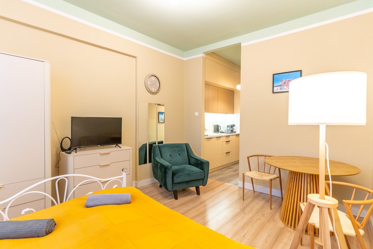 Przytulny apartament zlokalizowany w centrum Warszawy, na cichej ulicy. Tuż obok tętniące życiem popularne restauracje, bary i kawiarnie. Idealny dla par oraz turystów biznesowych dzięki swojej centralnej lokalizacji. Dobrze zaprojektowana przestrzeń zapewnia komfortowy pobyt dla dwóch osób. Studio jest w pełni wyposażone: internet, TV, pralka, suszarka stojąca, ręczniki i szeroki wybór kosmetyków - wszystko dostępne dla Ciebie.
