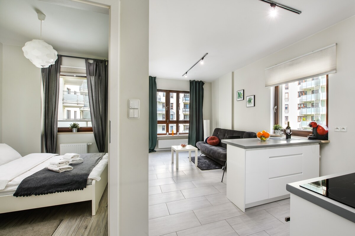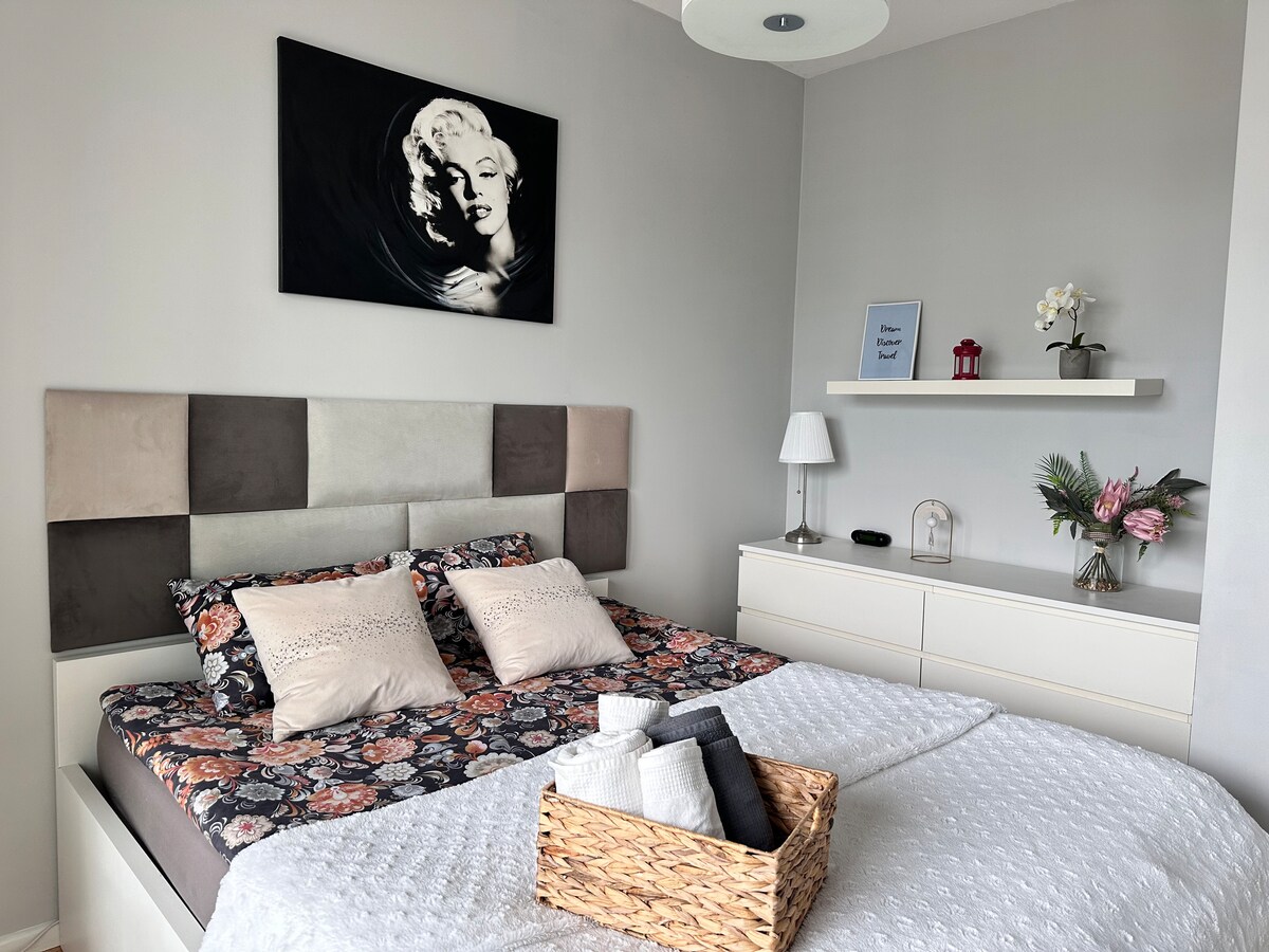 Modern apartment in Warsaw offers a perfect combination of style and functionality. It is located next to the Golden Terraces. In this apartment, a spacious bedroom organically combines with a cozy living room, creating an attractive and comfortable atmosphere. The apartment is designed for modern living, providing comfort in a busy urban environment. Next to the apartment is the Varso Tower, the tallest building in Europe, which has an observation deck with a beautiful view of Warsaw.Welcome!