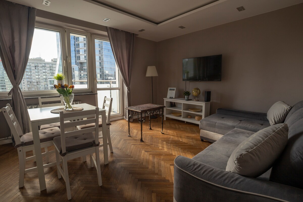 PERFECT Location: -Main city center, next to metro, tram, palace of the culture -2 rooms -double bed -double sofa -Fast WIFI -Full eq. kitchen -bathroorm unlimited hot water -heating -Fresh lines, towels -Easy check&check -Super safe building&area -Restaurants, bar, shops, starbucks Its such a great location that you dont need any other transport then your foot!