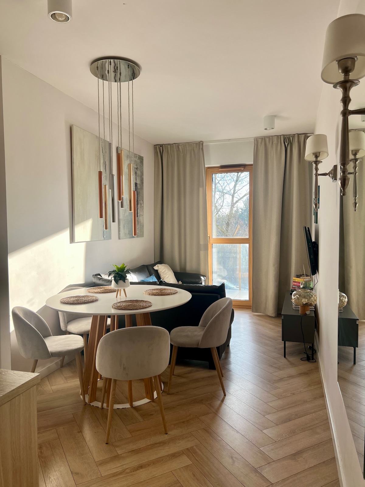 Piękne, nowe, czyste studio z bardzo wygodnym łóżkiem z dobrą jakościowo pościelą, ręcznikami i kosmetykami. Kuchnia w pełni wyposażona z nowym sprzętem agd. Czajnik, ekspres do kawy z dużym wyborem smaków na cały pobyt, spieniacz do mleka, podstawowe produkty śniadaniowe. Miejsce parkingowe na 1 samochód gratis!!! Duży telewizor z dostępem do międzynarodowych kanałów TV i Netflix! Studio zlokalizowane jest na nowym, czystym, bezpiecznym osiedlu z całodobową ochroną. Czysto, spokojnie, cicho!