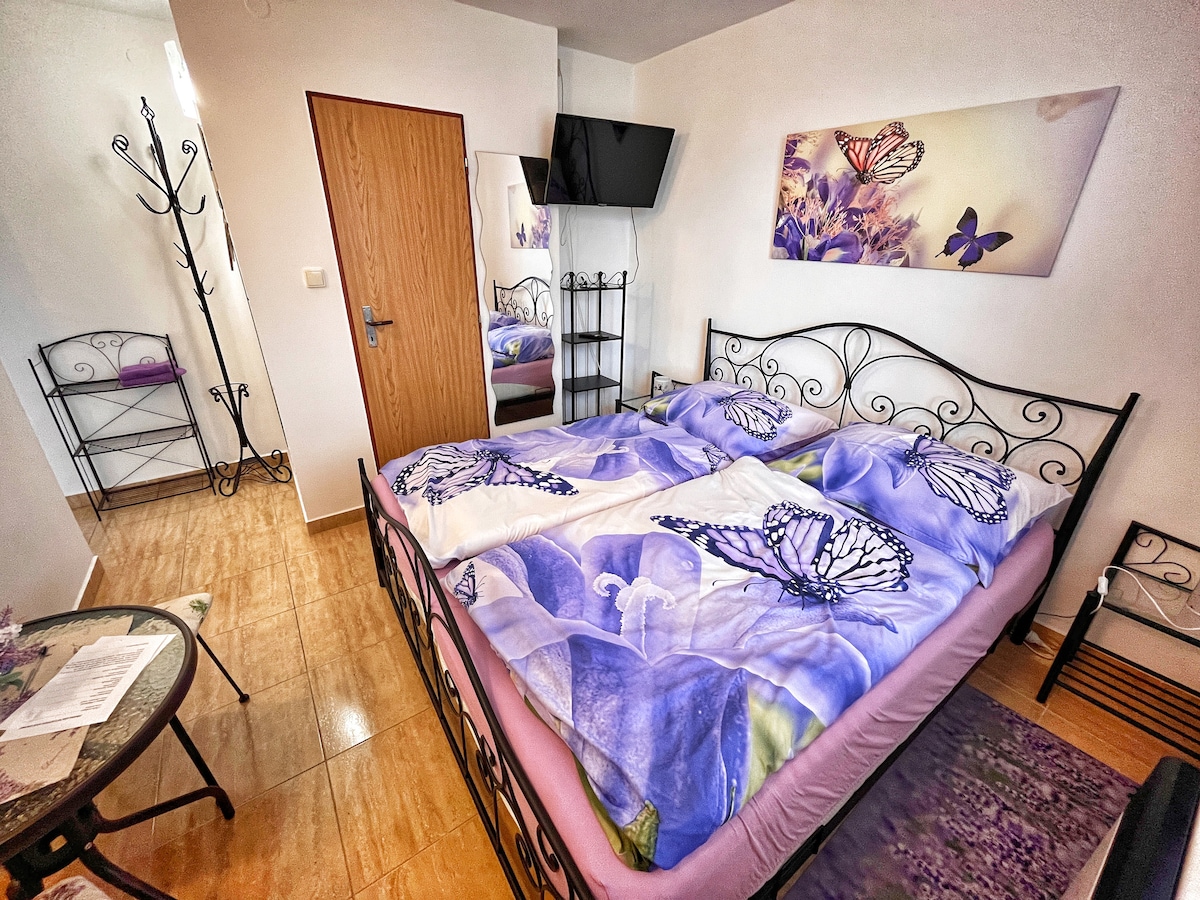 Newly renovated attic apartment with air conditioning, featuring 2 bedrooms. The first bedroom includes a double bed and a single bed. In the second bedroom, there are two separate beds that can be used as either a double bed or two single beds and one single bed. We also offer guests a complimentary option to borrow a crib for children. Amenities include TV, internet access, and parking space. The accommodation is suitable for cyclists, motorcyclists, and families with children.