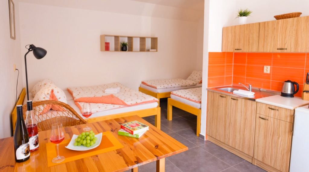 Klidné ubytování vhodné jak pro rodiny tak partu přátel. Lze využít i dvůr a posedět venku. Příjemné posezení je v hospůdce Na Palírně, která se nachází hned vedle budovy, ale díky situování oken není případný hluk slyšet. Možnost uschování kol v budově. Apartmán je nově zrekonstruován a nachází se v budově Myslivny, kde je možné si pronajmout prostorný sál s kapacitou až 100 osob. Obec se nachází 12 minut od přehrady Nové Mlýny, 30 minut od Brna a Znojma. Dobré autobusové spojení.