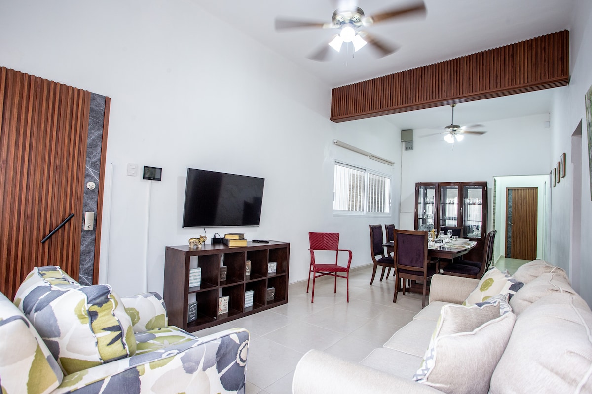 Spacious Apartment with Tapanco, air-conditioned rooms surrounded by tourist attractions, shopping plazas, 5 minutes from the historic center, 2 minutes from beaches 1 km from the Veracruz Aquarium. -Room with smart TV and tapanco with rest network for adults and children. -Modern dining room and kitchen. -Master bedroom with king size bed, bathroom, closet and smart TV. -Secondary bedroom with double bunk bed and a single bed and closet. -Garage for one car with electric gate.