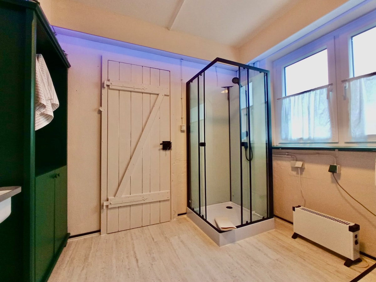 Lehne dich zurück und entspanne dich – in dieser ruhigen, stilvollen Unterkunft. In der exklusiven Infrarotkabine oder in der wunderschönen Natur bei einem Waldspaziergang oder am nahe gelegenen See. Hier gibt es einen hellen Wohn, Ess-, Arbeits und Kochbereich. Zusätzlich ein gemütliches Schlafzimmer und ein helles Bad. Alle Räume verfügen über ein Fenster mit maßgefertigten Insektenschutzgittern. Geheizt wird mit einer Fußbodenheizung.