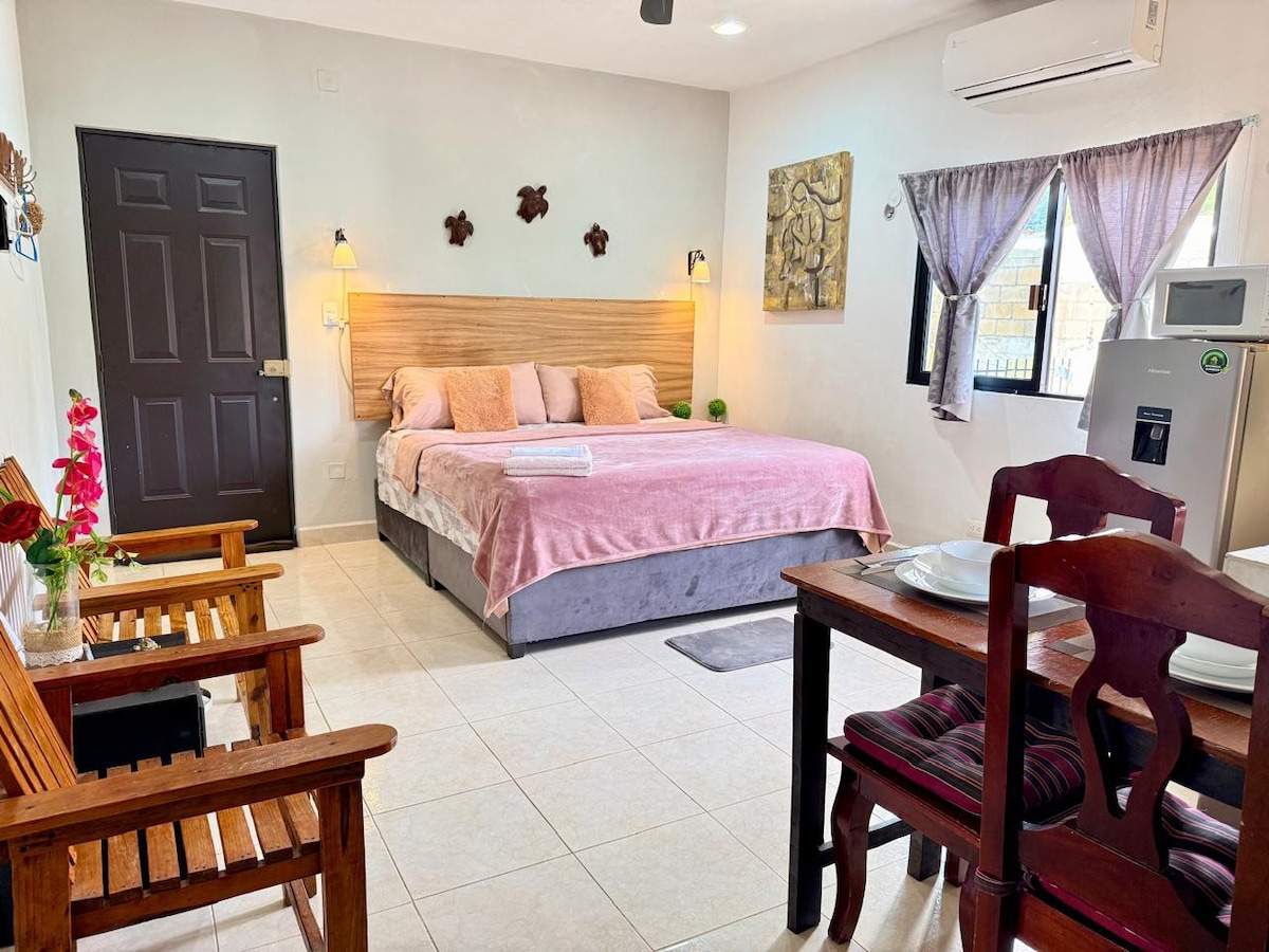 No proporcionamos factura, 15% descuento semanal, 20% descuento mensual. Disfruta de una visita memorable cuando te quedes en este lugar único, a 500 metros del Mercado municipal y centro de la ciudad. Confortable alojamiento rodeado de arboles y naturaleza. Cuenta con todas las comodidades como aire acondicionado dentro de todo el alojamiento, agua caliente, cafetera con cafecito incluido. Si tienes suerte podrás ver animales de la zona ( variedad de pajaritos, iguanas, lagartijas y ardillas.)