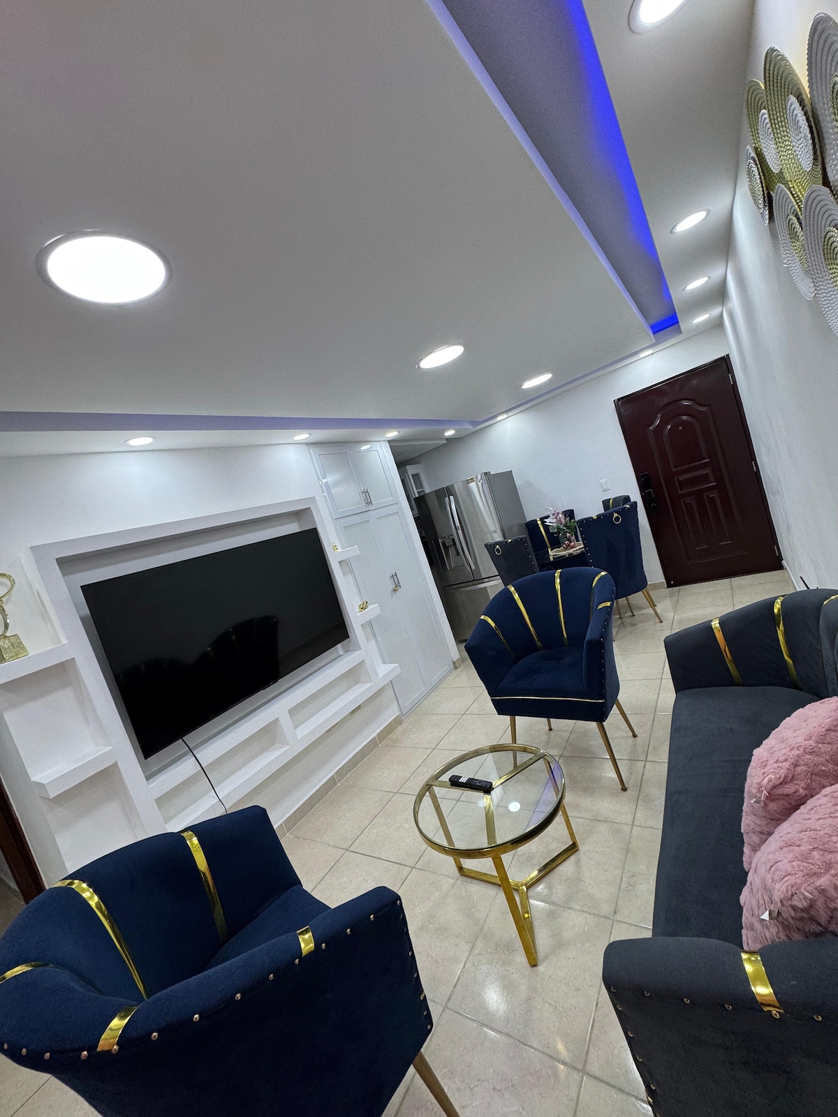 Modern and Cozy Apartment Located in the Center of the City (Zona Universaria). The Apartment is located on the 2nd Level, Which Is Composed of 2 Bedrooms With Their Bathrooms and Closet, Living Room, Dining Room, Kitchen, Laundry Area, Balcony, Half Visitor's Bathroom, 1 Anscensor, 2 Parking spaces, Gym, Common Terrace, Intercom and 24 Hour Security. This Apartment is in the best Location since it is a Quiet and Silent place Near the Malecón, Supermarkets, Restaurants, Banks, Casinos Etc