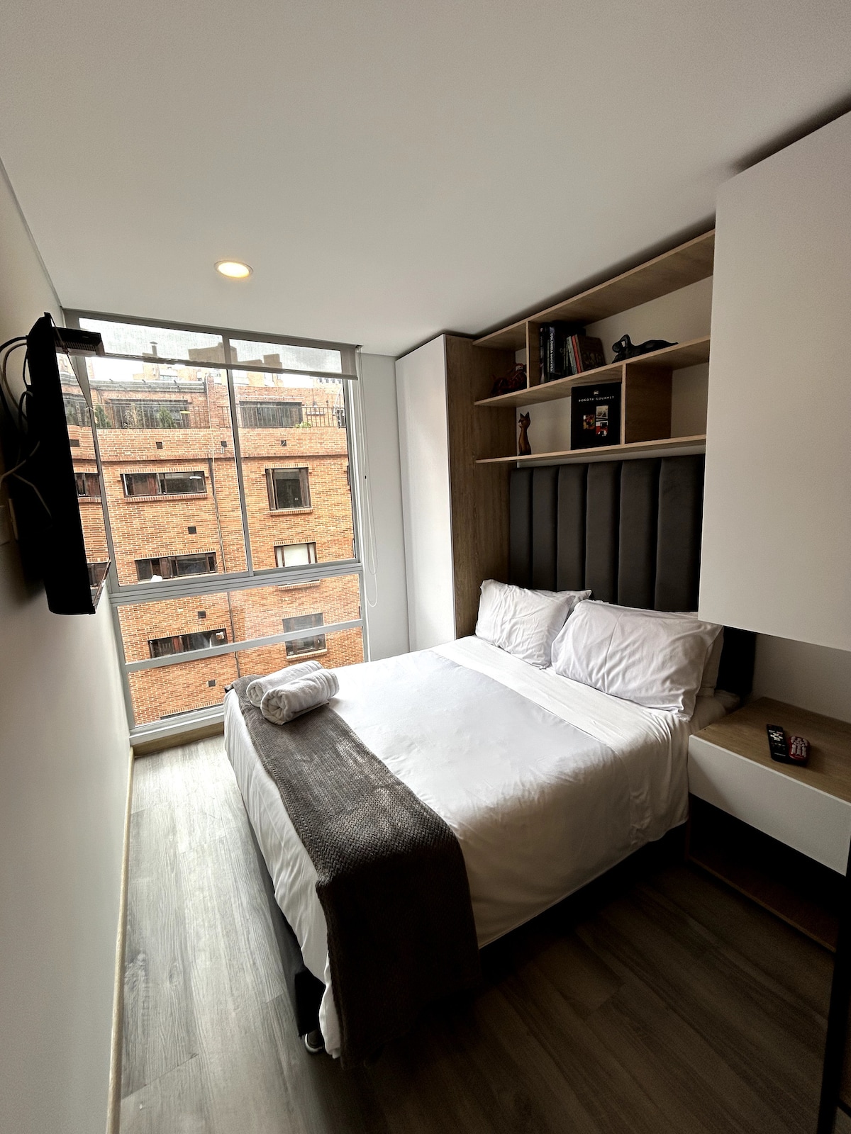 Disfruta de un moderno loft en una de las zonas más exclusivas de Bogotá. Ubicado estratégicamente a pocas cuadras de la Zona T, Zona G, y los principales centros comerciales como Andino, Atlantis y El Retiro, así como de la clínica del Country, este loft te sitúa cerca del centro financiero y de los mejores restaurantes, bares y sitios de entretenimiento de la ciudad. Ideal para estadías largas o viajes de trabajo y turismo. El edificio cuenta con co-working y terraza.