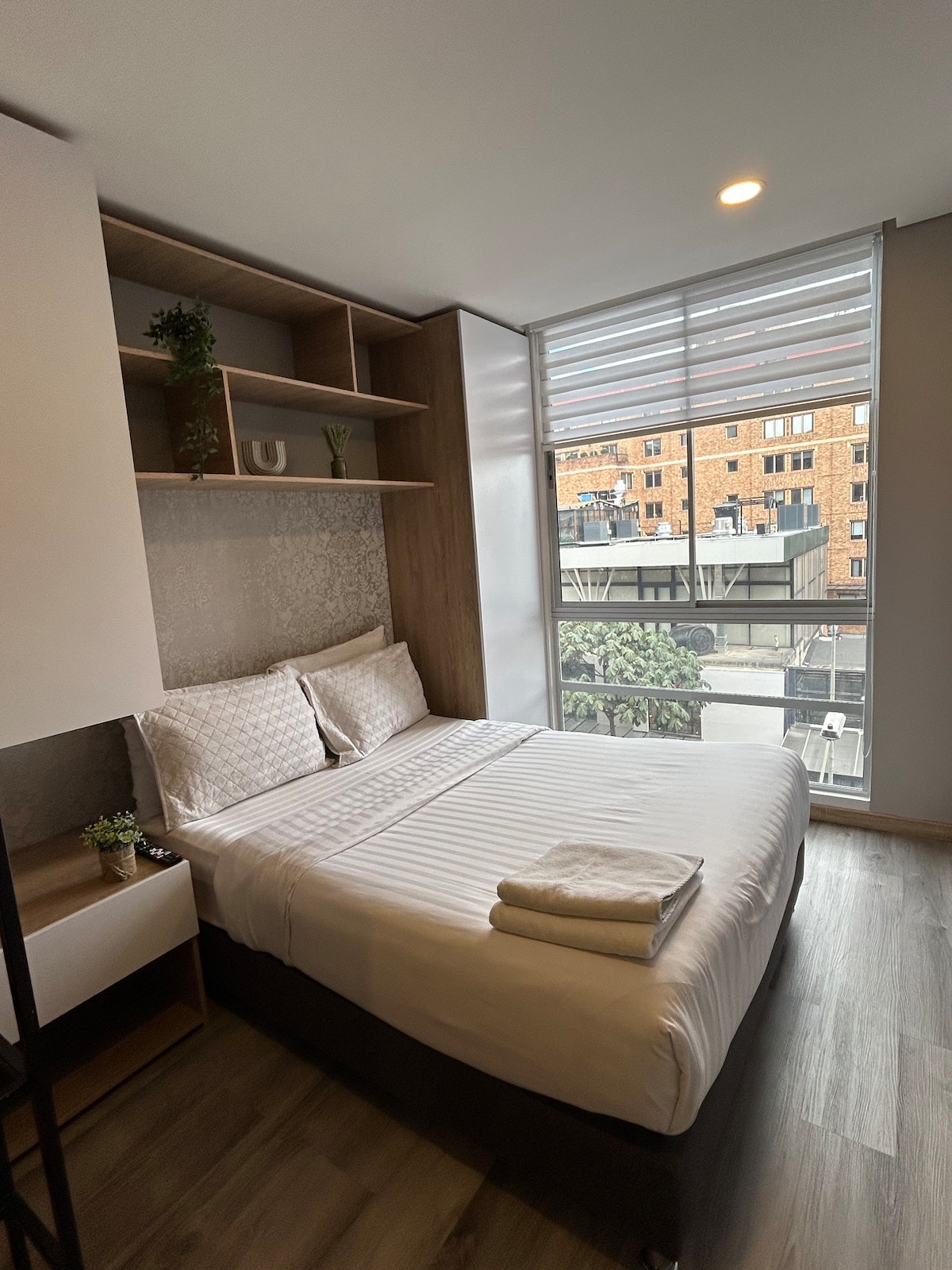 ¡Bienvenido a tu refugio urbano en la mejor zona de Bogotá! Este encantador apartamento dúplex de una habitación ofrece una experiencia única en la capital colombiana. Con una ubicación en la mejor zona de bogota, cerca al parque el virrey, parque de la 93 y zona T El apartamento esta dotado con Sala de estar Cocina Equipada Comedor Terraza Baño Cama doble Escritorio Tv 55" El edificio ofrece Seguridad Lavanderia comunal 2 Terraza con vista 360 P9 coworking Numero de registro 176799