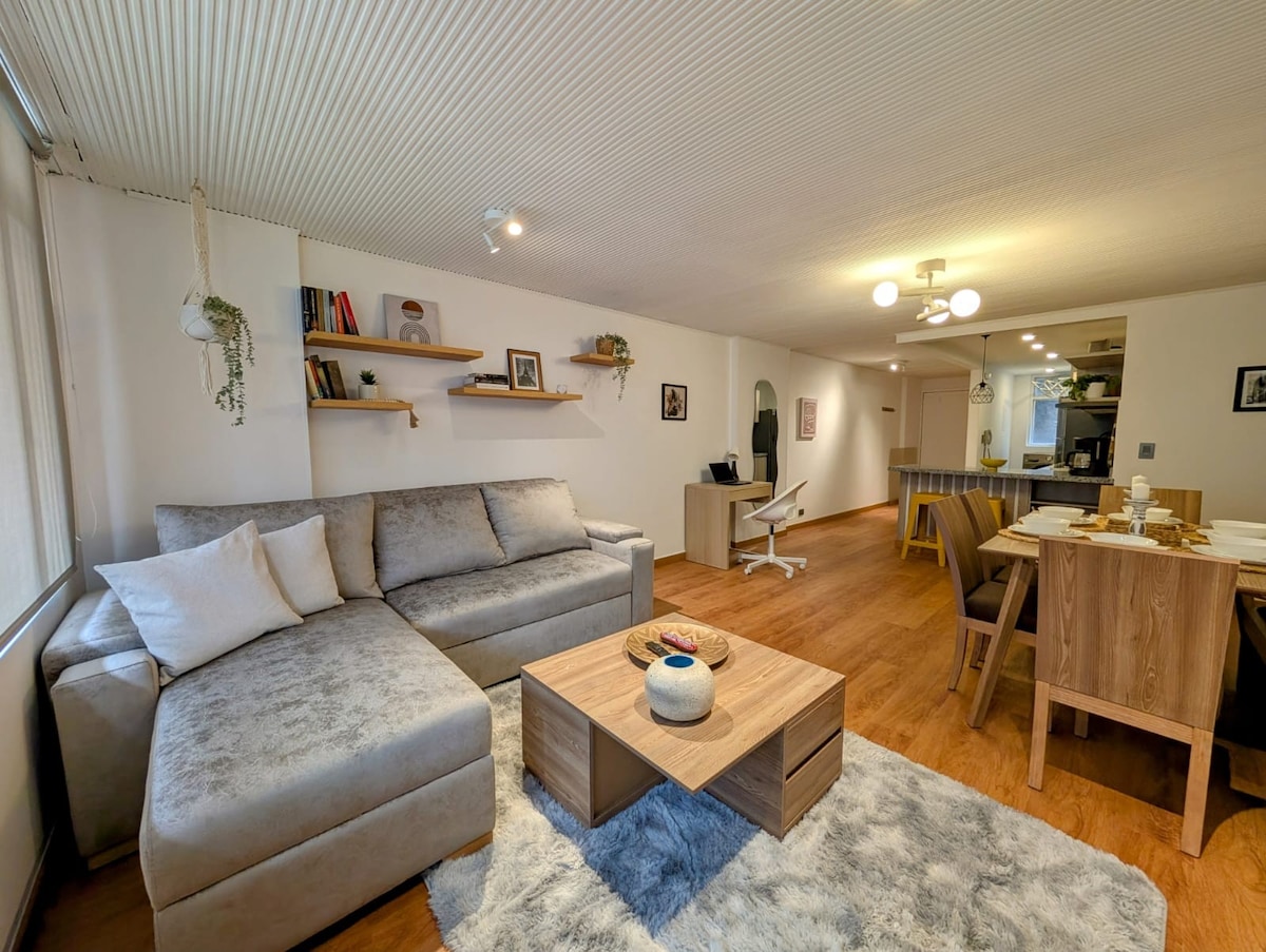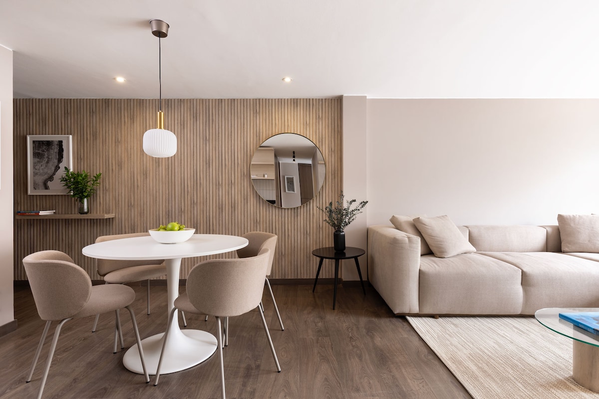 Let yourself be captivated by the serenity of our charming apartment, where the bedroom offers views of a quiet, sunlit street. Featuring a design that seamlessly integrates the living room, kitchen, and dining area into an open and welcoming space, the apartment is known for its warm and bright ambiance. Located just a few meters from the Hilton, JW Marriott, and Four Seasons hotels, in the heart of Quinta Camacho and Zona G, you'll have access to restaurants, cafés, and bars.