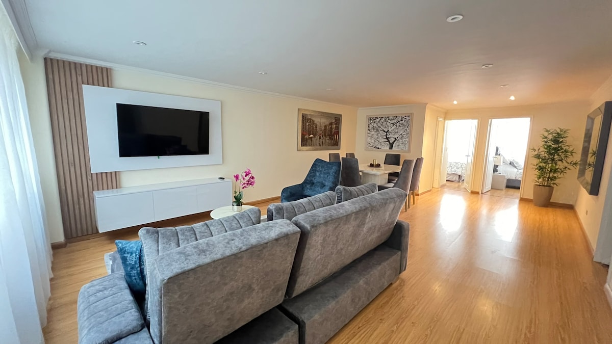 A stylish brand new place to stay perfectly comfortable for a short or long period of time. It has clearly everything you might need for having a unique and unforgettable experience overlooking the beautiful mountains and view of Bogota during the day and night. A great queen size bed, a sofa-bed, excellent bathroom, and for those that likes cooking, it has all sort of gadgets for facilitating so.Nearby you will find the best clubs such Theatron, among many others, grt-bars and shopping spots.