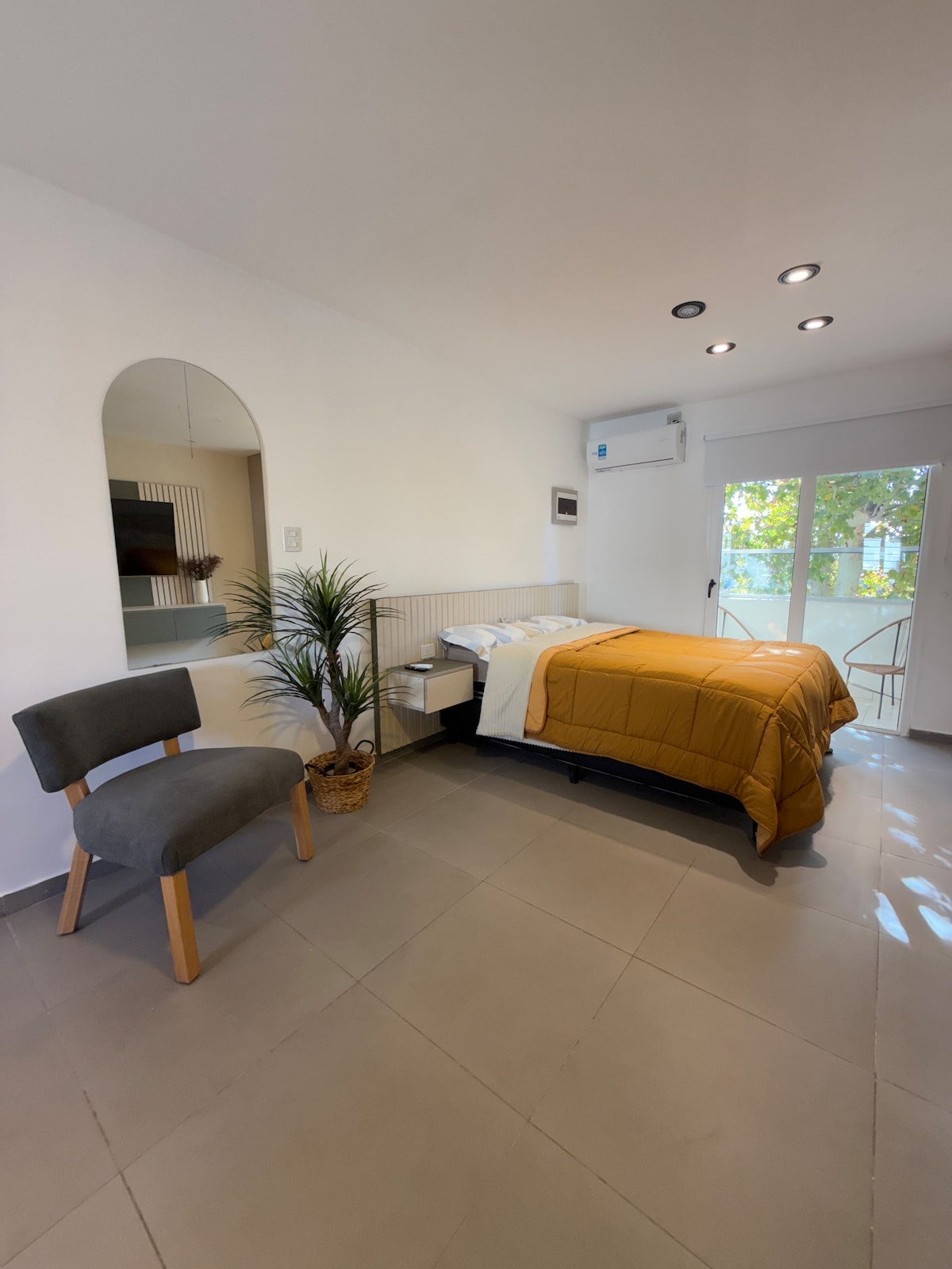 Ubicado en San Juan CAPITAL, a 50 metros del Shopping Patio Alvear, Cine, cafes y bares. A 5 min caminando del Estadio Aldo Cantoni y Auditorium Juan Victoria. Equipado para pasar una estadía excepcional. Cuenta con una cama matrimonial (1.60 x 2 mts), Smart TV, Aire Split Frio/Calor, WiFi, Toallas, Sabanas, Horno y Cocina, Pava Eléctrica, Tostadora y todo lo necesario para que te sientas como en tu casa. El CHECK IN es a partir de las 3 p.m y el CHECK OUT antes de las 11 a.m. (FLEXIBLE)