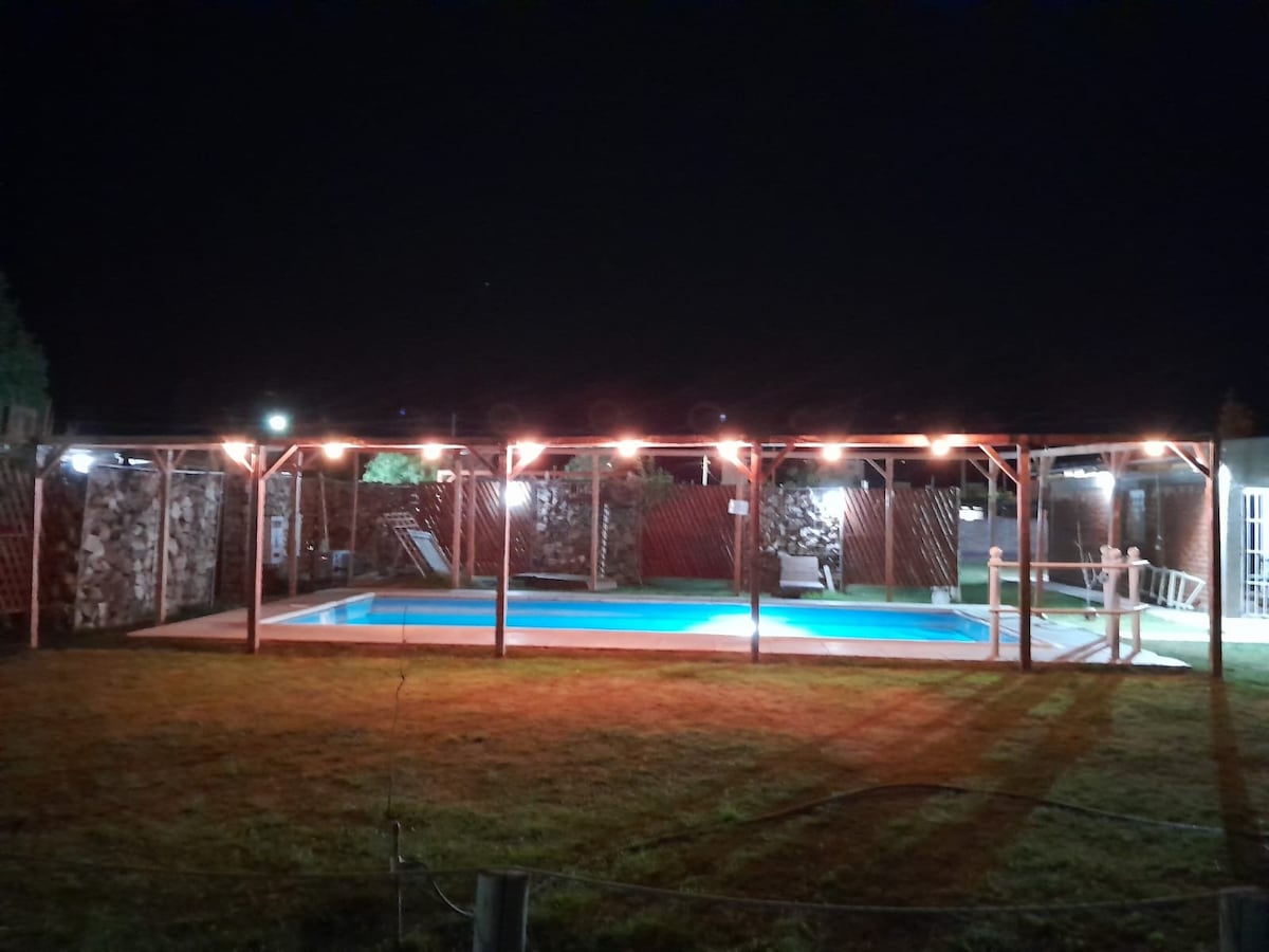 Elegido por quienes disfrutan del campo, noches y amaneceres increíbles, aromas únicos. La casa brinda las comodidades para disfrutar en familia y con amigos, son 3 dormitorios equipados con 4 camas individuales y 2 matrimoniales (opcional ropa de cama) cocina equipada con vajilla, solo debes llevar los alimentos. En el sector de la parrilla hay un horno a leña para disfrutar. Extenso parque exterior de 1500m2 y la pileta se pude disfrutar de día y noche.