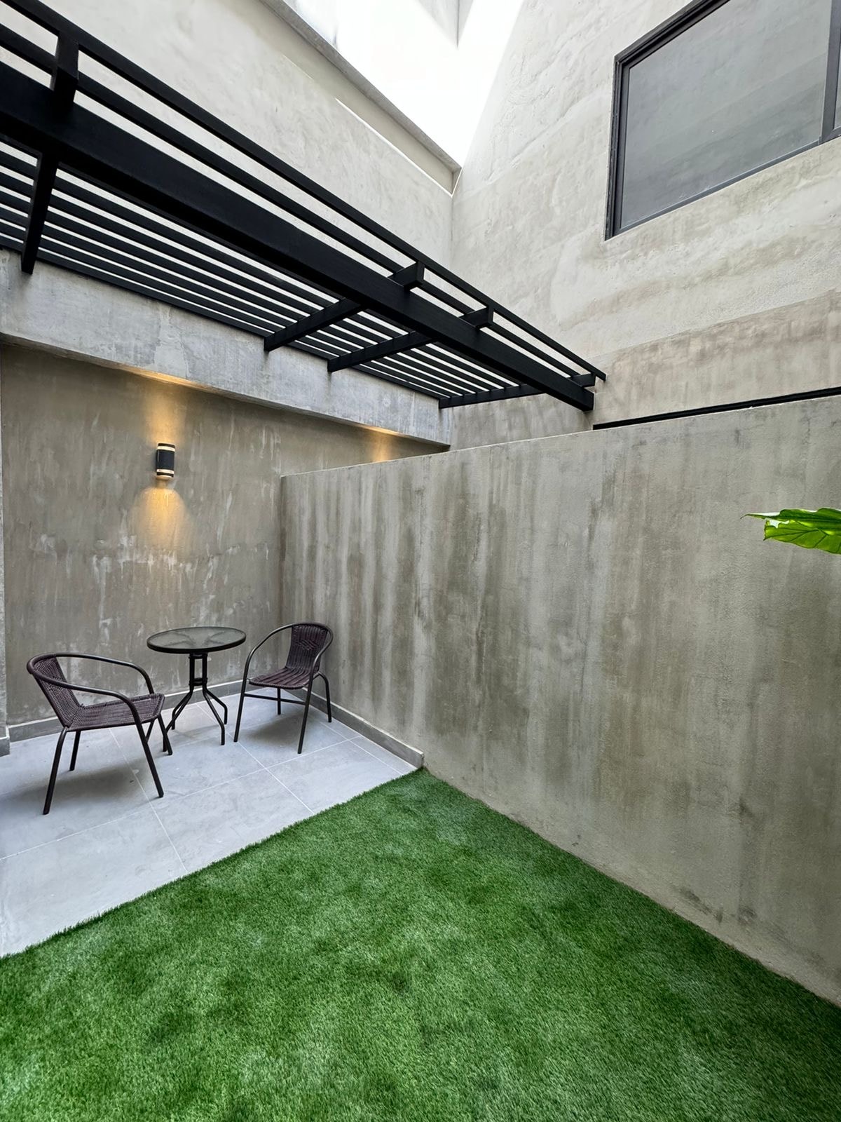 Apartamento completo con un lindo jardín interno. Podrás aprovechar al máximo tu estadía al estar en un lugar céntrico y al mismo tiempo relajarte en un lugar tranquilo con jardín. Ubicado a 20 minutos del aeropuerto Internacional La Aurora, a 10 minutos de zonas de restaurantes, hospitales y cerca de transporte público, que lleva directamente al Centro Histórico. A la par del alojamiento se encuentra una tienda de conveniencia y a dos cuadras se encuentra un supermercado Torre Express