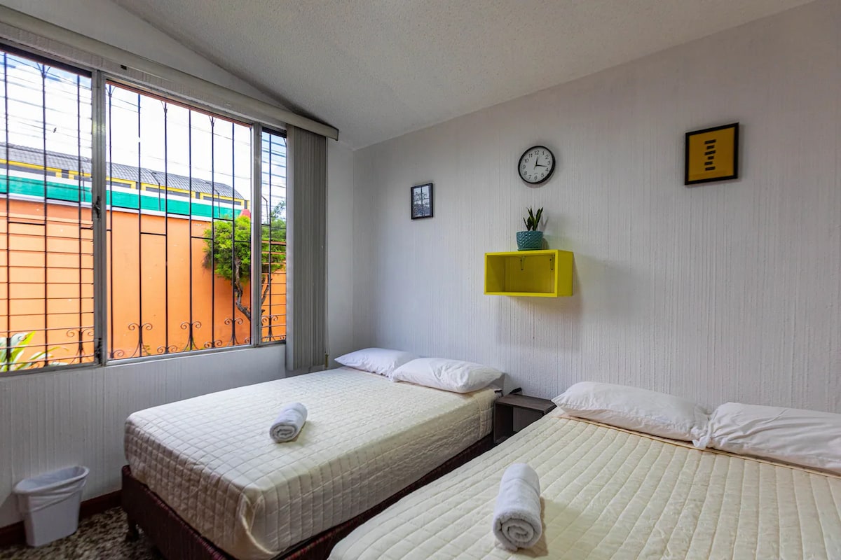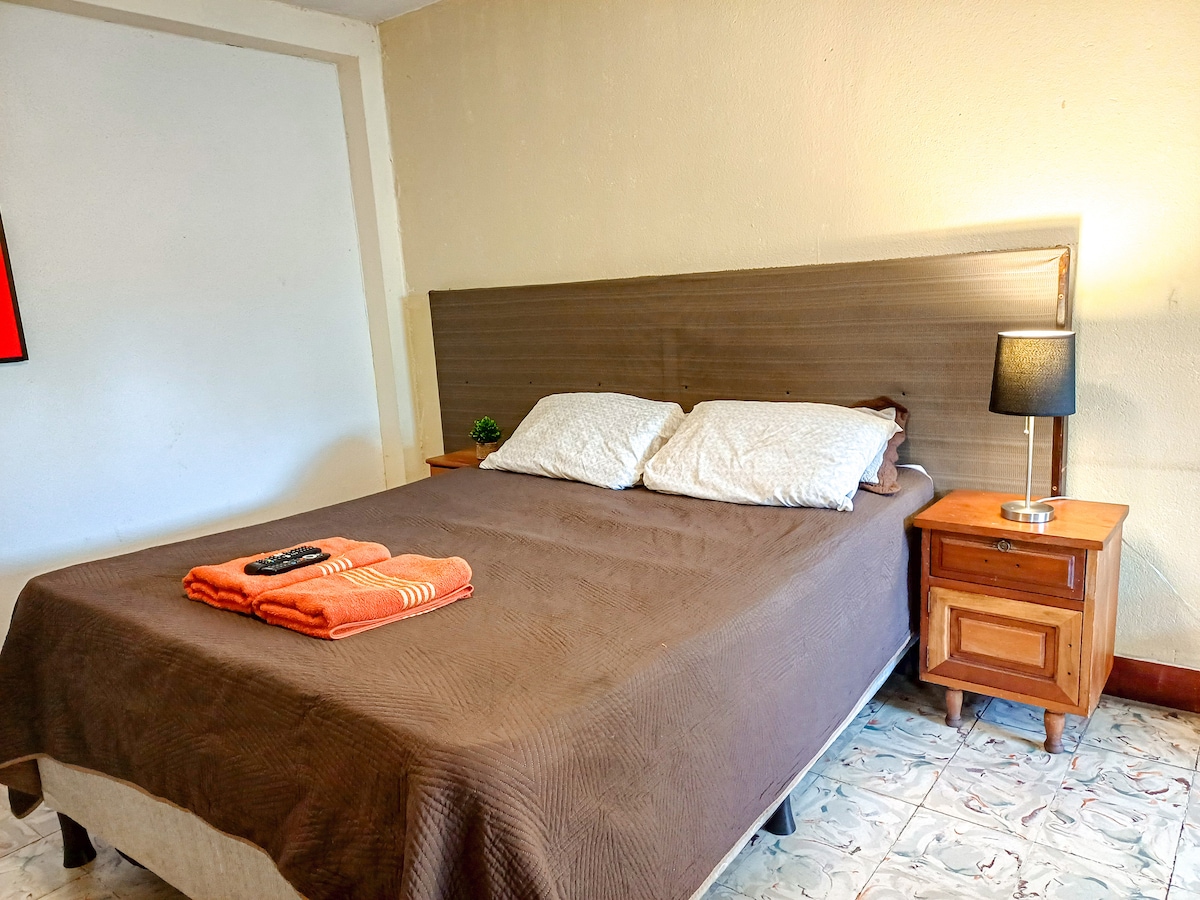 Relájate en este alojamiento donde la tranquilidad se respira, es un escape de la ciudad rodeado de naturaleza con cercanía al aeropuerto ubicado en un barrio popular. La habitación cuenta con baño privado, agua caliente, una amplia iluminación y tenemos Wi-fi en el primer y segundo nivel de la casa