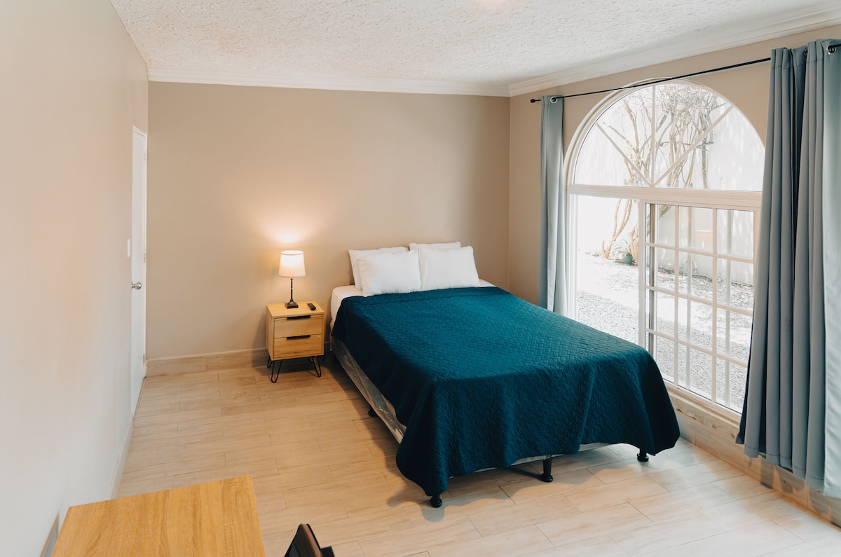Es una habitación pequeña, pero con toda la comodidad incluyendo, un baño privado de buen tamaño. Este cómodo espacio para una persona está ubicado en el corazón de zona 10, puedes disfrutar de nuestra ubicación en la ciudad a la vez de confort y seguridad. Puedes caminar en esta zona y encontrar restaurantes, bares, supermercados, parques, arte etc. Disfruta de la sencillez de este alojamiento . sin necesidad de usar vehículo para transportarse. A 5 minutos del aeropuerto