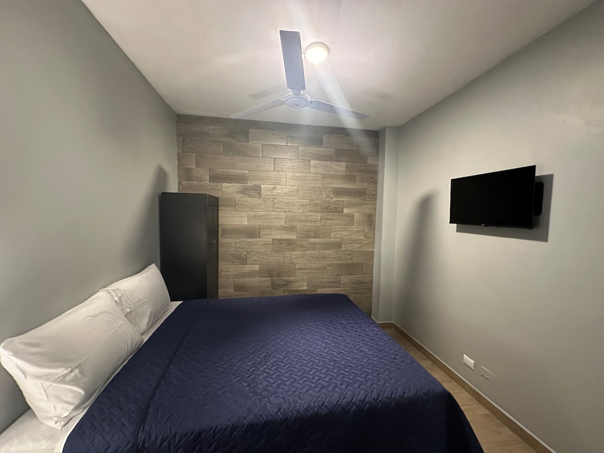 Habitación moderna y económica con baño privado cerca del centro histórico en la zona 1. La habitación se encuentra en un hotel que cuenta y con recepción 24/7. La habitación cuenta con smart Tv, closet, ventilador y wifi de alta velocidad