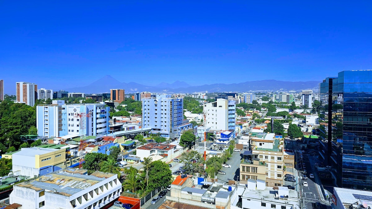 Apartamento céntrico, privado, limpio y con vista a los volcanes en zona 10. Este apartamento cuenta con: -Jacuzzi -Piscina -Gym -Cama ortopédica nueva y de la mejor calidad -Ventilador silencioso -Cocina equipada -Secadora de cabello -Smart TV HD y excelente velocidad de Internet. Cuenta con parqueo privado, acceso caminado, múltiples Centros Comerciales, Plazas, cafeterías, librerías, ciclovías y vida nocturna alrededor. Ubicado en la zona hotelera de la Ciudad de Guatemala.