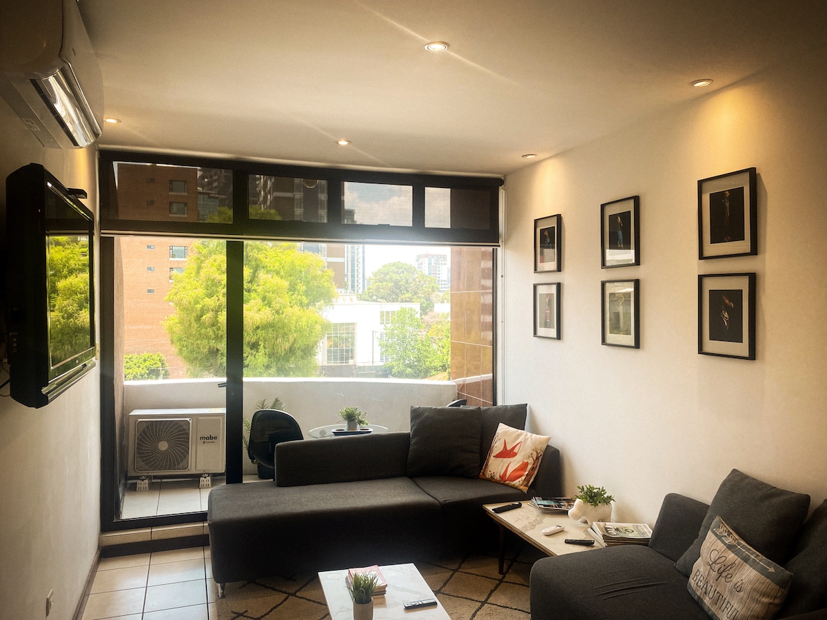 It's a very comfortable, spacious and nice place, right in the heart of Guatemala City. It has a great view because it's located in the 11th floor. You can find different restaurants, coffee shops, bakeries, shops and touristic places nearby. It has a queen bed, sofa bed, another huge sofa, bathroom with hot water, washer and dryer machine, dining room, a desk where you can work on your computer, Wi-Fi, NETFLIX, HBO and cable TV. There is an EcoFilter for water and a fan. IT INCLUDES PARKING.