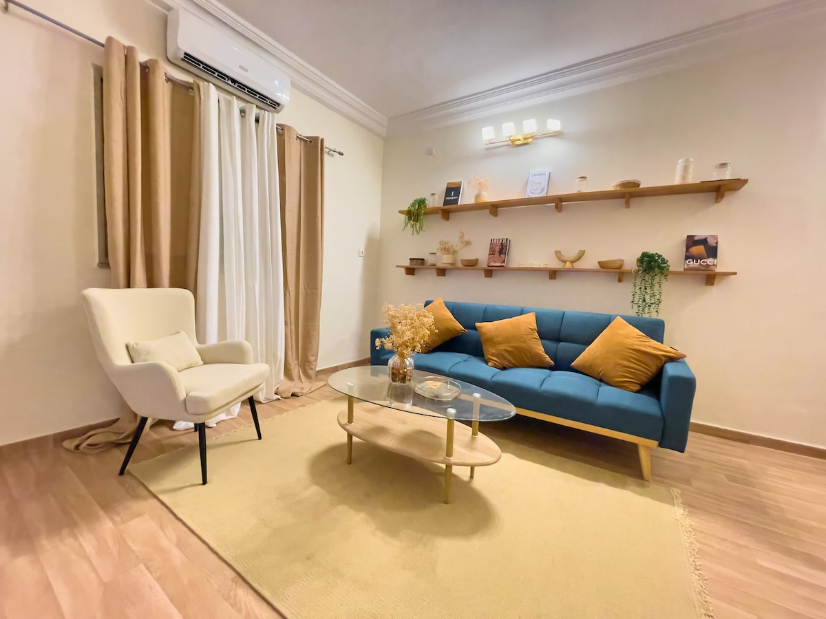 ✅️ Top 5% most loved homes on Airbnb. ✅️ Free daily cleaning. ✅️ 24-hour security. Profitez d'un logement élégant et central dans la ville et glissez-vous dans l'ambiance cosy de ce charmant quatre-pièces en Zone 4. Les bonnes ondes sont à l'honneur dans une harmonie d'art,de musique, et d'or où triomphent la douceur et la lumière.
