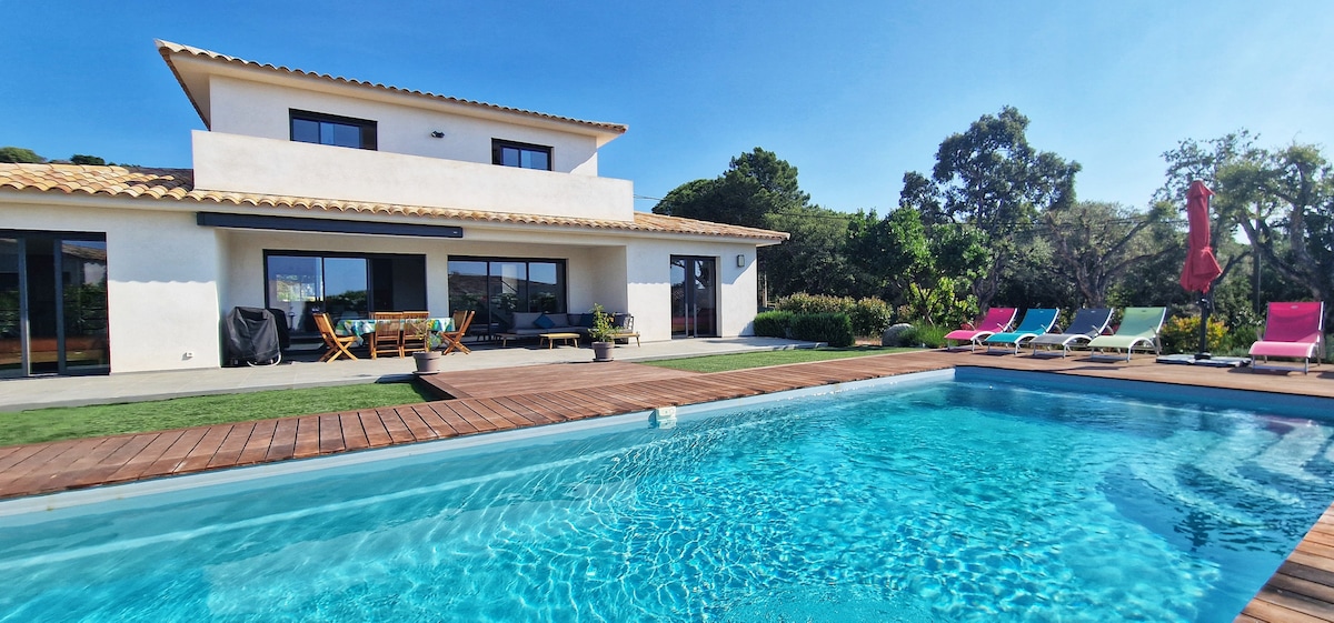 Bienvenue chez nous. Notre villa d'architecte, fraichement construite, est à 700 mètres de la superbe plage de Pinarellu. Vous y accéderez à pieds par un petit chemin de terre traversant le maquis. La maison est spacieuse, lumineuse, facile à vivre, vous profiterez du coucher de soleil en prenant l'apéritif sur la jolie terrasse baignée de soleil avec vue sur la montagne. Pinarellu est adapté aux sports de glisse. Vous pouvez louer bateaux, Wingfoil, Kitesurf, e-foil, catamarans...