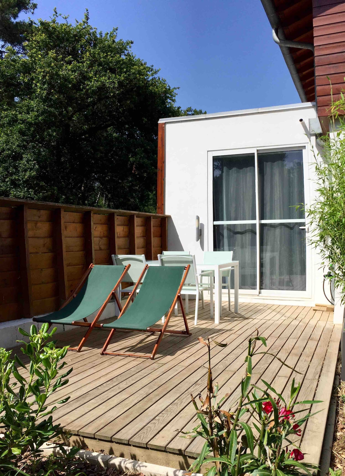 2 bedroom new house of 40m2 under pine trees with a private garden. 800m from the beach and close to cycle paths through the forest that bring you north to Capbreton or south to Ondres. Access by a shared path. 2 bedrooms that can each be left with king size beds or split into 4 singles. Functional Living room/kitchen with all amenities and and a gas griddle for outside cooking. Eat dinner outside on the Patio and then take the aperitif on the sofa under the trees.