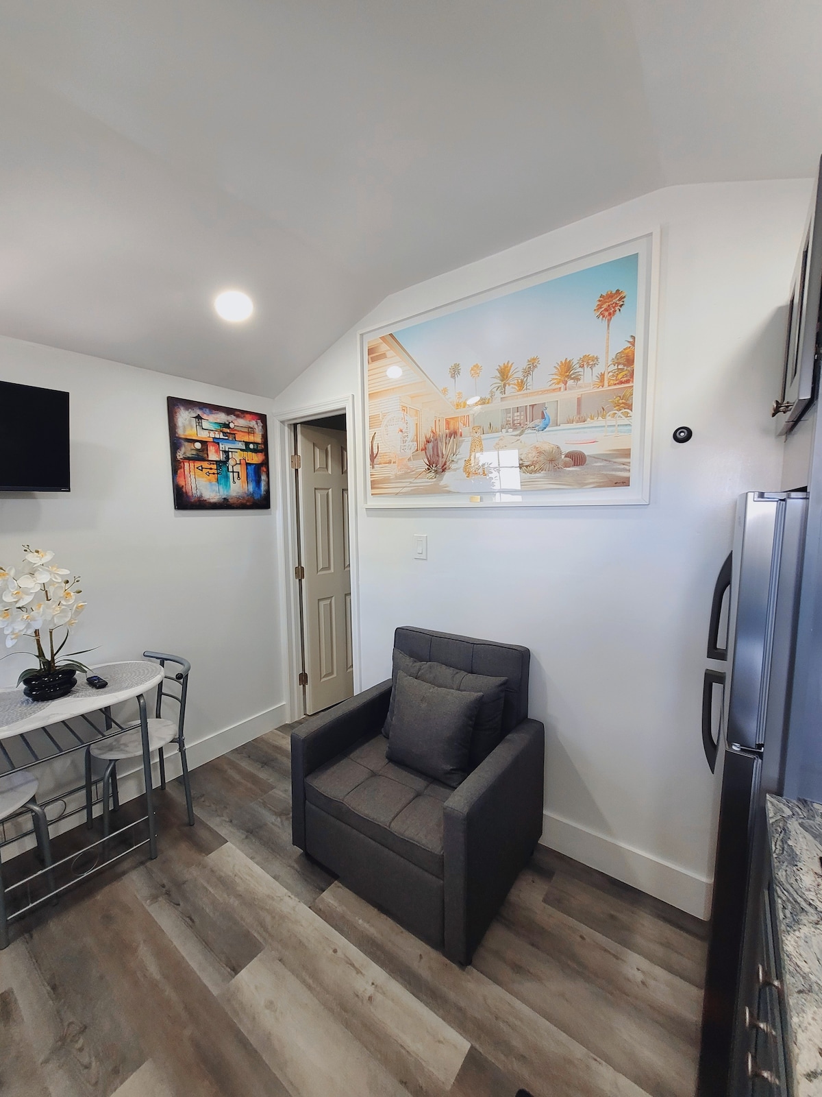 Welcome to Room 1, the first addition at Hacienda Paraíso. This suite is conveniently located next to another Airbnb suite, providing flexibility for your stay. It features a private entrance, bathroom, kitchenette, and dining table, ensuring a comfortable and self-contained experience. Enjoy the convenience of hotel-like amenities paired with the added bonus of access to our stunning pool and lush yard, creating a truly relaxing retreat.
