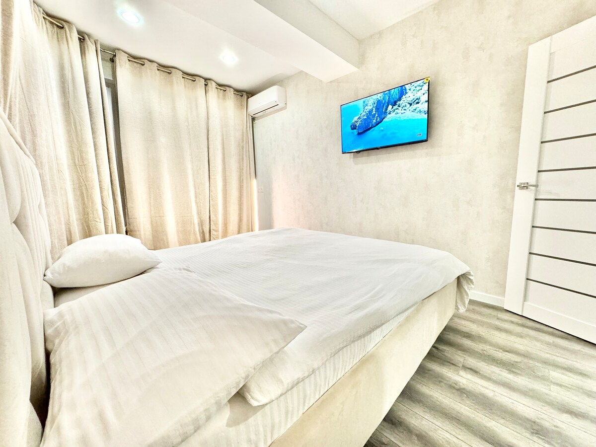 Однокомнатная квартира с ливингом находится в сердце Ботаники 15 минут от аэропорта, рядом Mac Donald’s , удобное расположения есть транспорт в любое направление города . Новый ремонт и уникальный дизайн , большая двух спальная кровати сделают ваш отдых незабываемый . В квартире вся необходимая техника для комфортного отдыха . По мимо большой светлой спальни есть и зона ливинга с большим телевизор и уютным диванчиком.