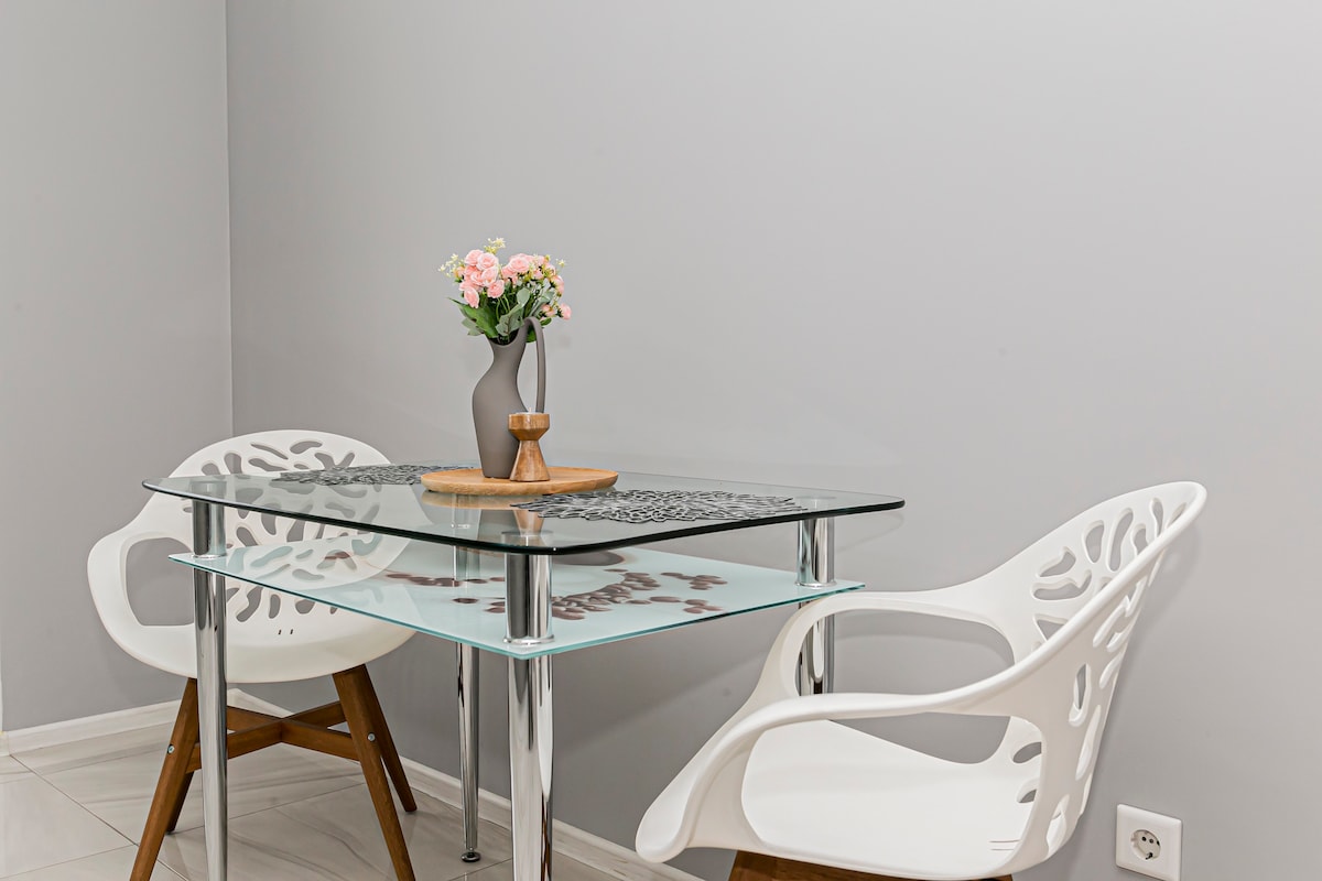 Ideal pentru familii, spațios, modern cu geamuri panoramice într-un bloc nou, in apropiere de centrul orașului, la (10 minute cu taxi 5€ ) de aeroport. Parcare subterană -14€ Locație excelentă,acces rapid la transport public, la 200 m de grădina botanică, supermarket, farmacie, restaurante, bănci ,grădină zoologică. Oferă tot ce aveți nevoie pentru o ședere plăcută, bucătărie complet utilată, 2 TV smart cu Netflix, Wi-Fi. Bucură-te de tot ce e mai bun în Chișinău din acest loc primordial
