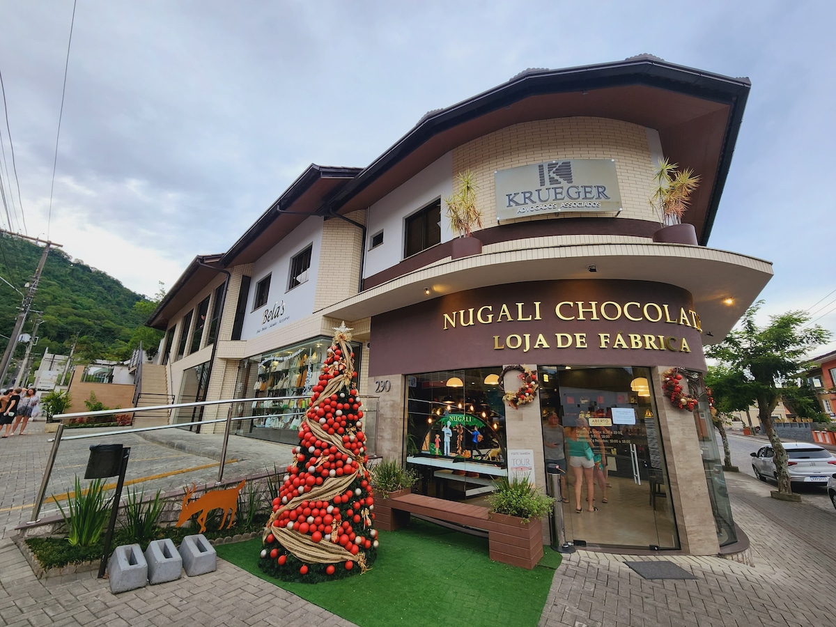 Um lugar pertinho de tudo que você precisa. Estamos no centro, local dos principais pontos turísticos, como o Zoológico, Vila Encantada, Loja de Fábrica Nugali, Centro Histórico e muito mais. O Alles Park (Vila da Neve) e o Pavilhão de Eventos, onde ocorrem diversas festividades estão muito próximos do apartamento. Um supermercado está há poucos passos, na mesma quadra. Curta Pomerode e recarregue as energias em nosso espaço.