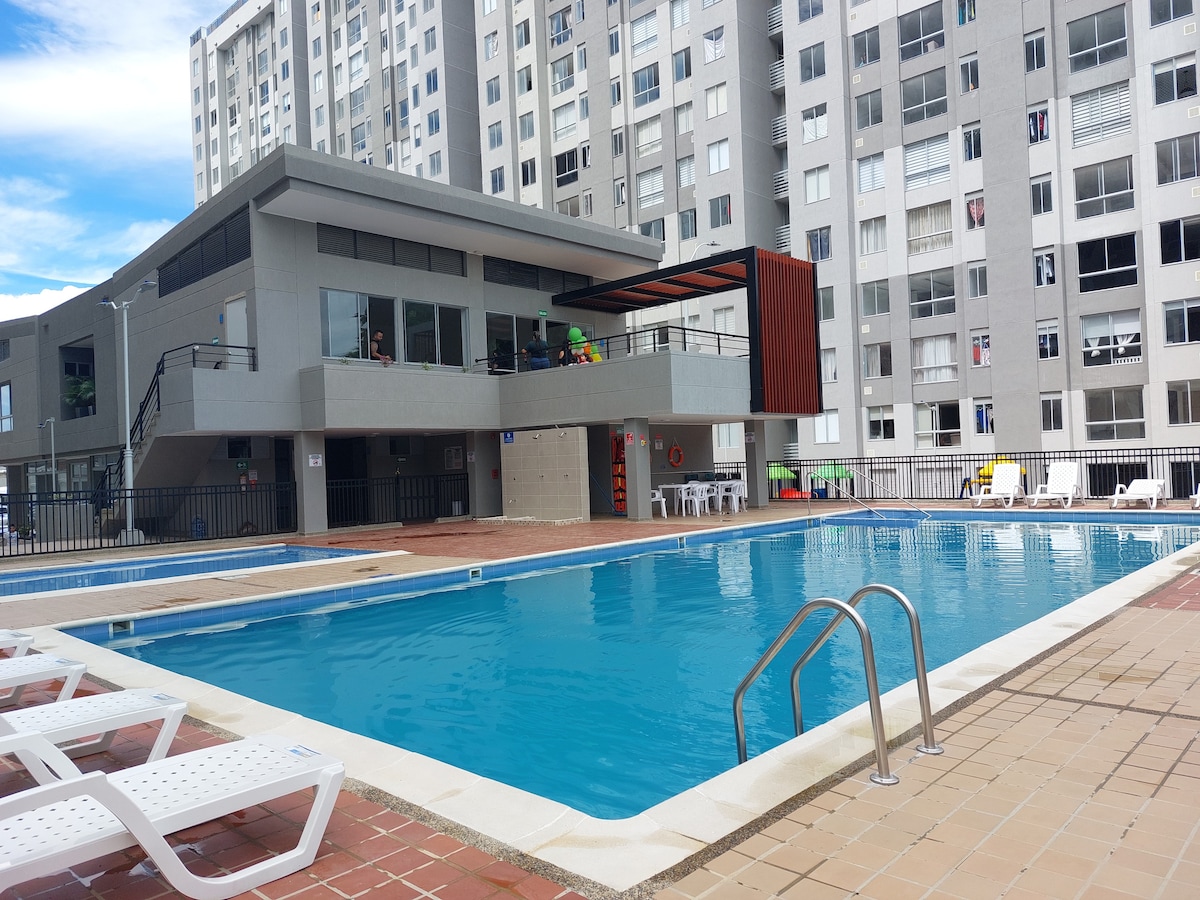 Un moderno apartamento de arquitectura contemporánea. Cuenta con una pequeña terraza con techo corredizo, un cuarto con closet, estudio con una cama doble, y dos baños completos. Zona tranquila segura cerca a parques, centros comerciales, restaurantes, etc. Parqueadero durante el día puede haya, puede que no. El parqueo en la entrada del edificio, el carro duerme afuera, a 3 metros de la entrada.