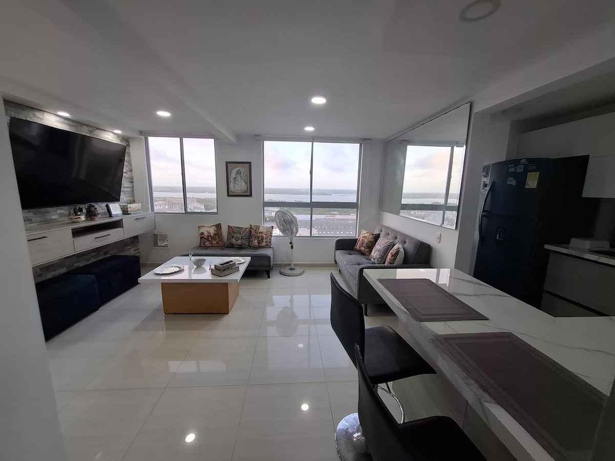 Disfruta cerca a todos los sitios de interés de la ciudad cómodamente. Apartamento nuevo, a 20 minutos caminando del Centro de Eventos Puerta de Oro y Gran Malecón del Rio, vista de frente al canal de acceso del Rio Magdalena, el norte de la ciudad y al malecón. En carnavales, puedes vivir como pocos, a tan solo 50 mts., los mejores desfiles desde un palco envidiable. Tenemos un rooftop para que disfrutes del amanecer y atardecer sobre el rio magdalena y Barranquilla.