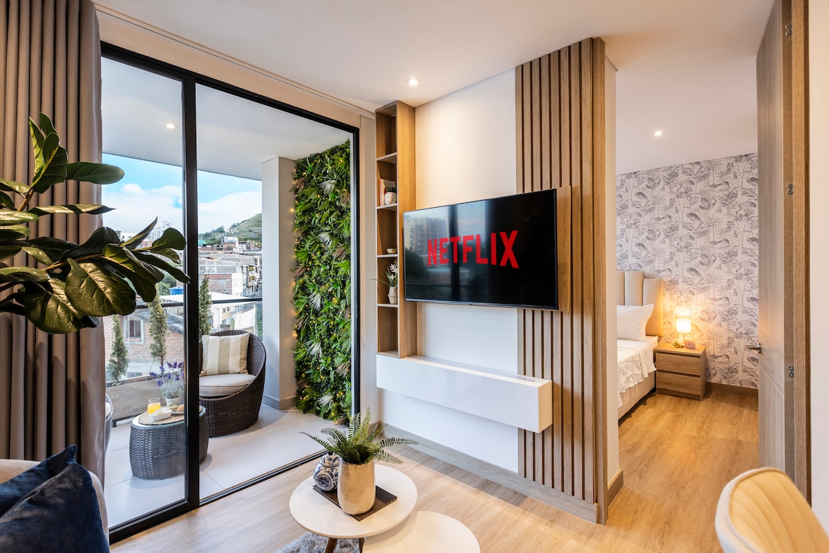 ApartaSuite moderno en el corazón de Cali – Confort. Disfruta de una experiencia única con una ubicado estratégica en la zona céntrica de Cali. Perfecto para viajeros que buscan comodidad, tranquilidad y cercanía a todo lo que la ciudad tiene para ofrecer. Zona húmeda con jacuzzi, ideal para relajarte después de un día de turismo o trabajo. Estás a pocos pasos de zonas verdes, avenidas principales, estaciones de transporte público, supermercados, restaurantes y bares. ¡Vive una gran experiencia!