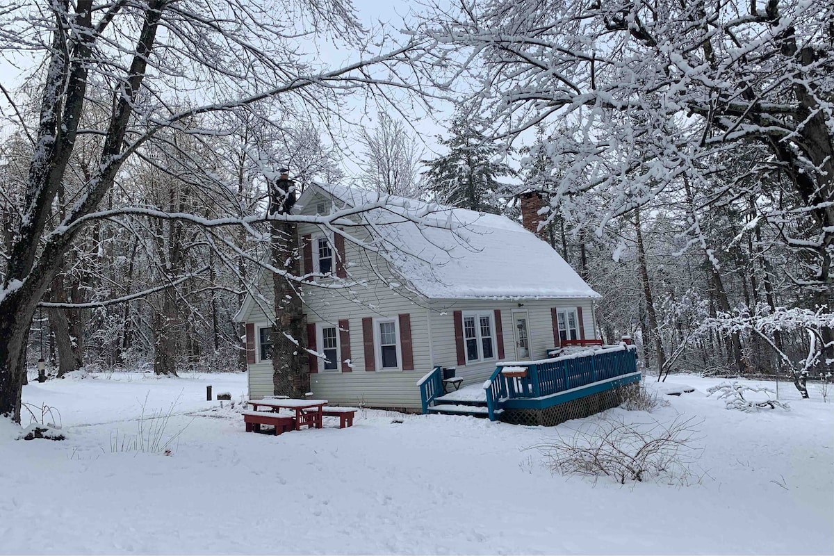 Enjoy a peaceful retreat at the cottage, or use as a home base for exploring the Catskills. Family-friendly, private 4 bed, on a secluded 6.4 acre property. Enjoy coffee on the deck. Grill dinner and gather at the picnic table. Read on a blanket or lounge chair on the spacious private lawn. Relax by an evening campfire at the fire pit. Enjoy the living room fireplace, play board games, stream a movie. Or choose a more active Catskills adventure! Explore area hiking and swimming holes.