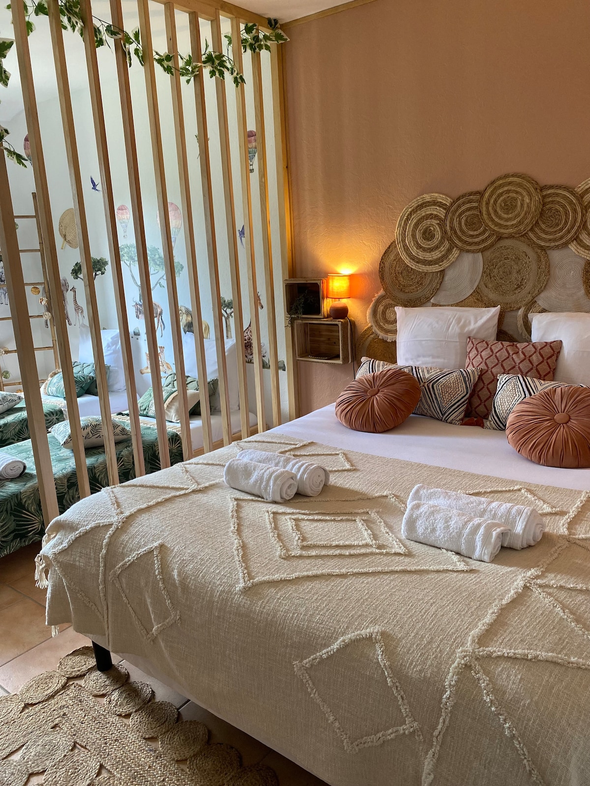 À seulement quelques pas de l'entrée du célèbre Zoo de Beauval, ce lieu unique offre un cadre confortable et enchanteur. Notre gîte se distingue par son décor thématique inspiré par la faune exotique et l'aventure, créant une ambiance immersive qui ravira petits et grands. Logement de plain pied, avec cuisine équipée, disposant d'une capacité d'accueil : - Un lit 160x200 - Un lit 140x190 - Lit 90x190 Linge et draps fournis Parking privé Wi-fi et Disney+ à disposition