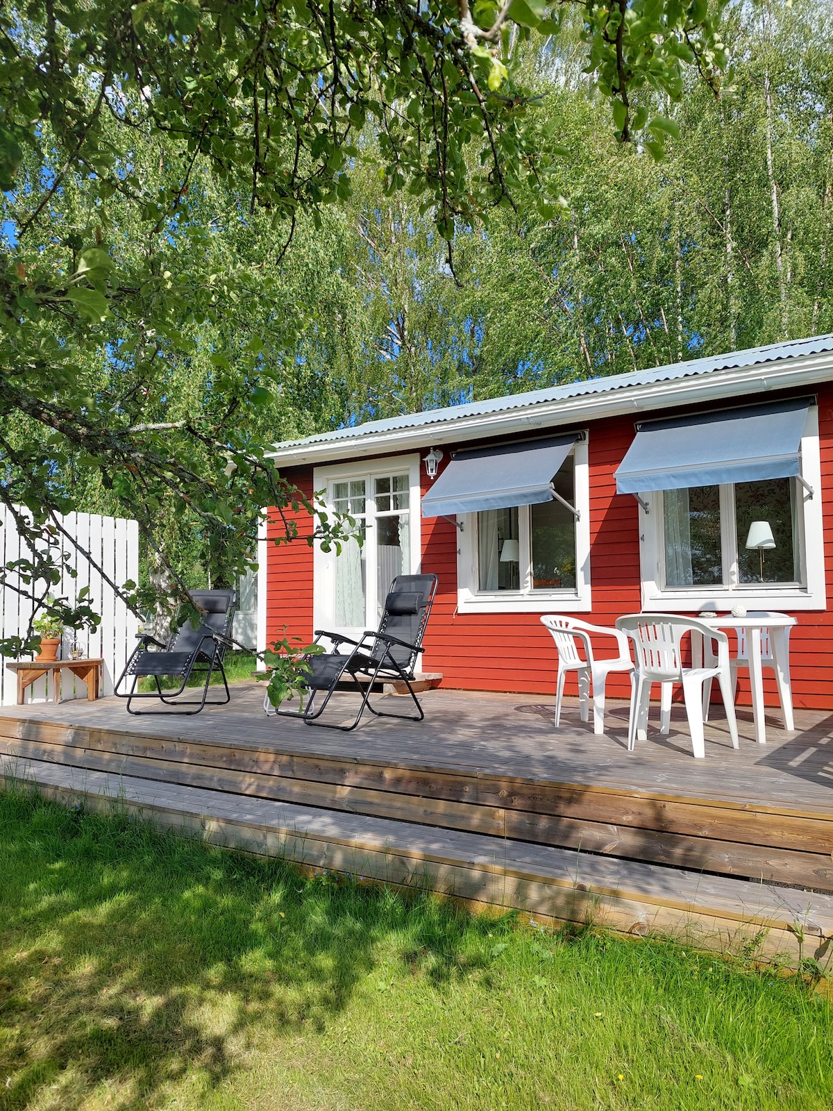 2 vuxna och 1 barn. Fräsch och mysig stuga. Dusch och toalett finns i stugan. Ett stort rum med kök. Stor altan. Fantastisk utsikt över Orsa sjön, bergen, åkrar och ängar. Vår underbara trädgård med äppelträd, hallon, blommor mm mm. Här kan man vila och ladda sina batterier. Det är ca 3 km till Orsa centrum . Rikt fågelliv. 20 min.till Grönklitt. Orsasjön med långfärdsskridskor och skidspår. 15 km till Mora och Vasaloppet.