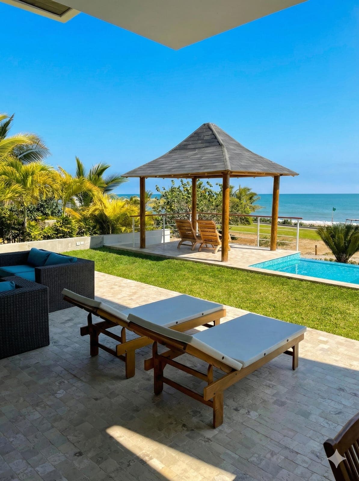 “Welcome to CasaNorte! Our property offers 2500 square meters of privileged oceanfront views with spectacular sunsets and sunrises. You’ll enjoy a private 12x4 meter pool, a barbecue area, a kids’ playground, and even a small gym—all on the property. The beach has calm, warm waters perfect for water activities, swimming with turtles, snorkeling, and whale watching right from the comfort of the house. We can’t wait to welcome you!”
