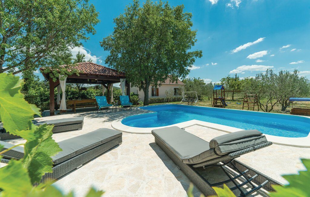 This beautiful villa with heated pool, hot tub and sauna is set on a remote and secluded landscape with a breath-taking view over the valley Heated pool from April to November Great place for relaxing and a starting point for exploring the region and Croatia! City distance Zadar is 28 km (airport 20 km) away Šibenik is 50 km away Split is 125 km (airport 99 km) away Attraction distance Plitvice lakes 125 km away Krka 45 km away Kornati 30 km away